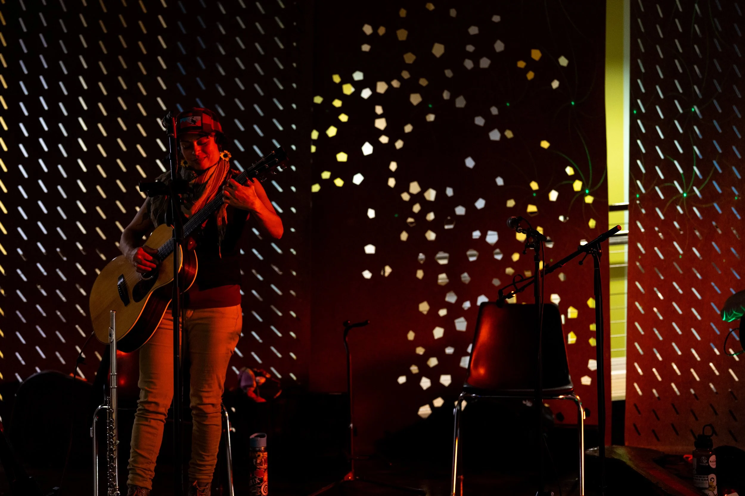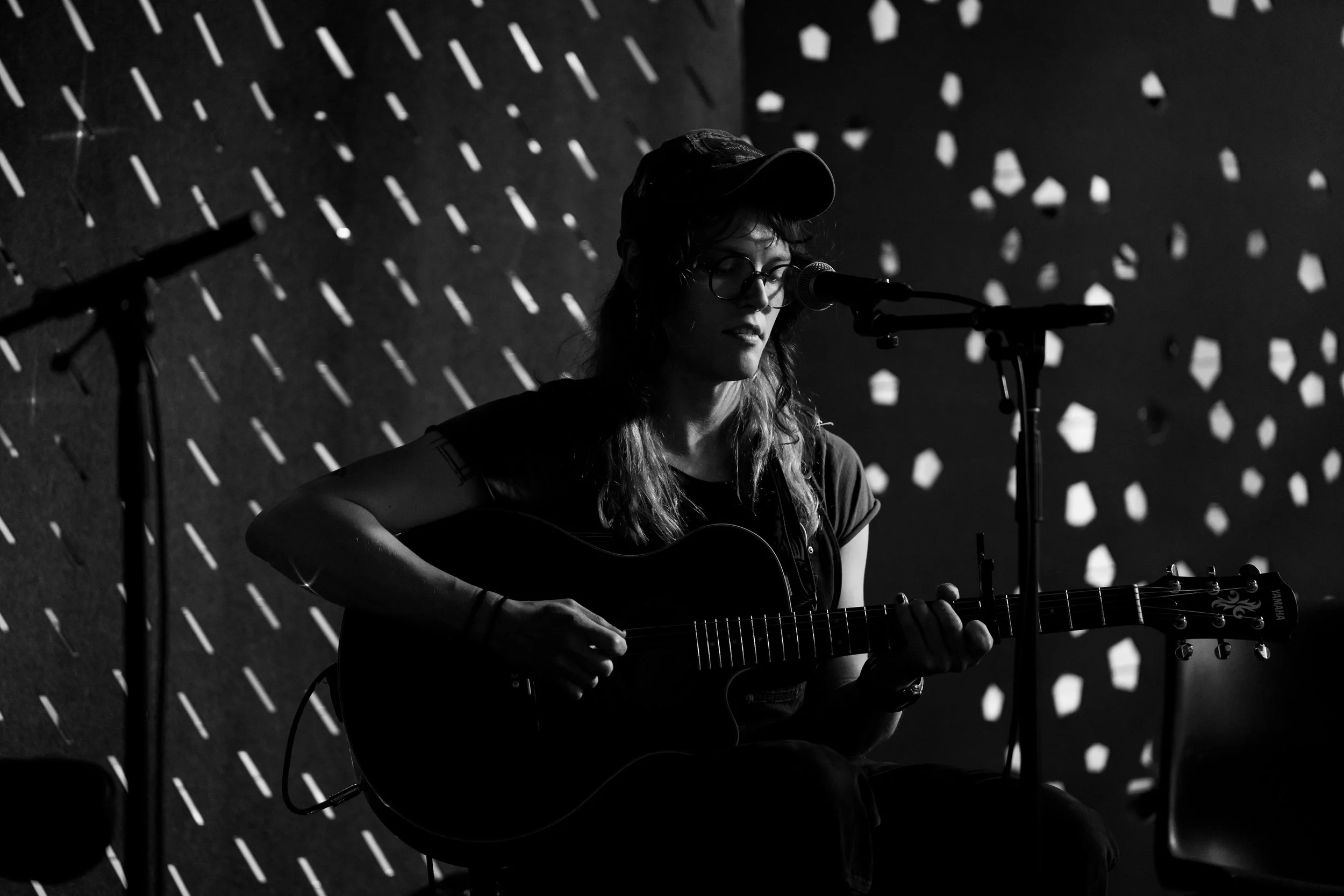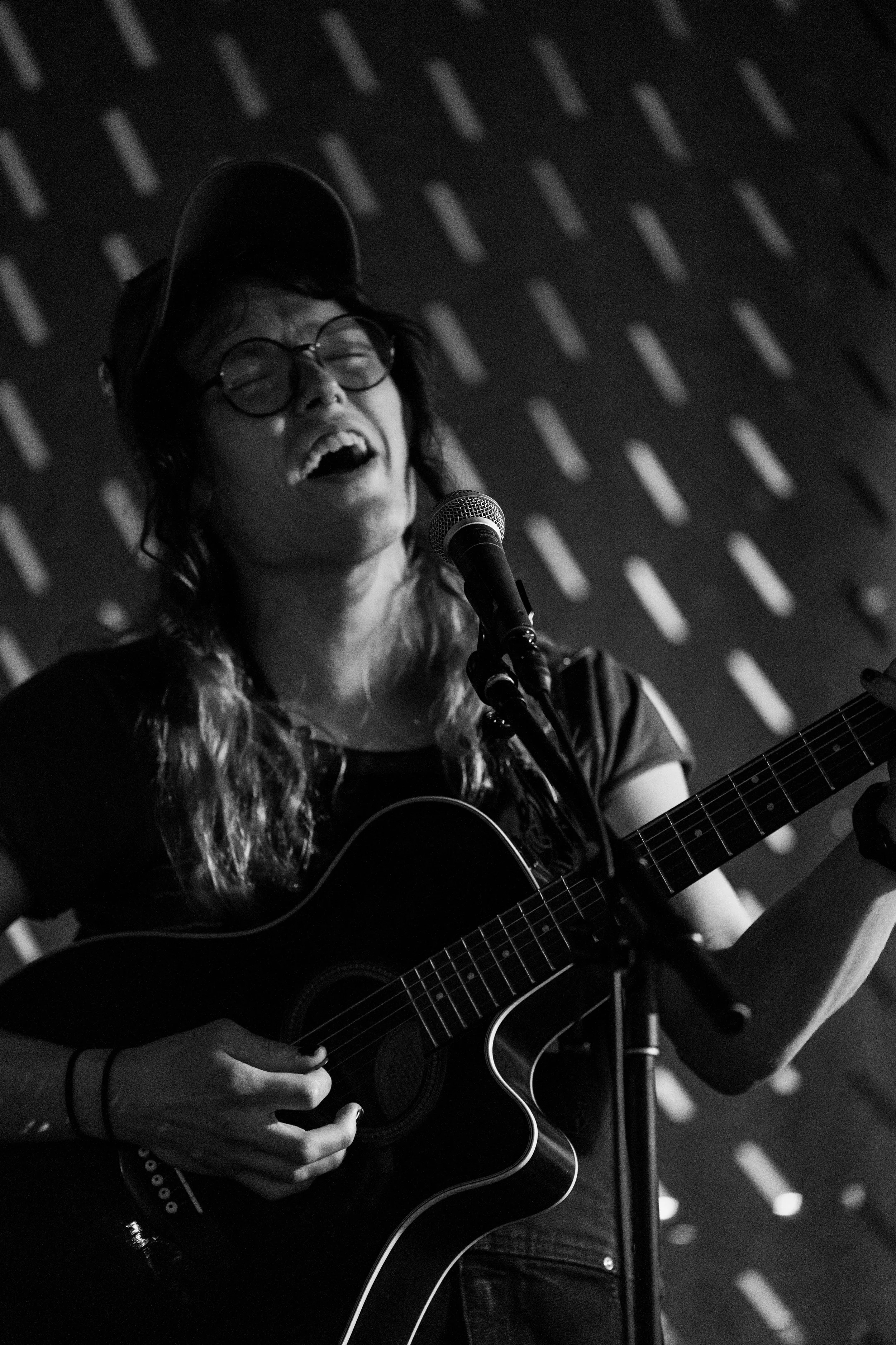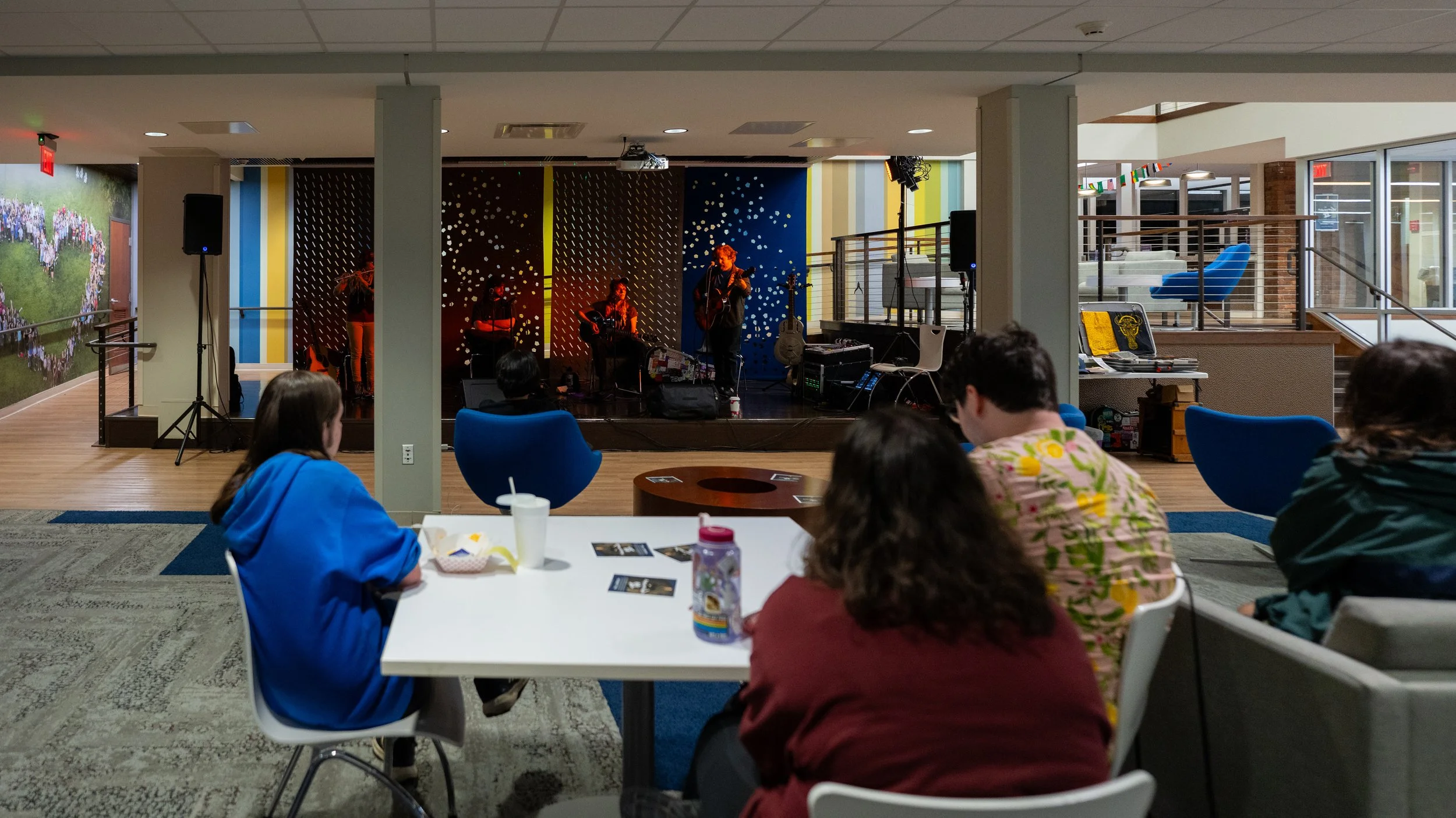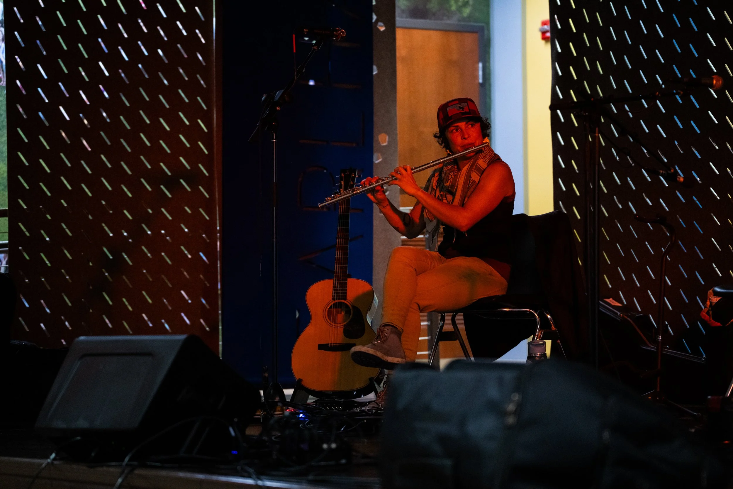 A songwriters' round sponsored by the Earlham Collage Music Department, hosted November of 2025 featuring Anna p.s. , Elijah Baston, and Cyrus Garretson.