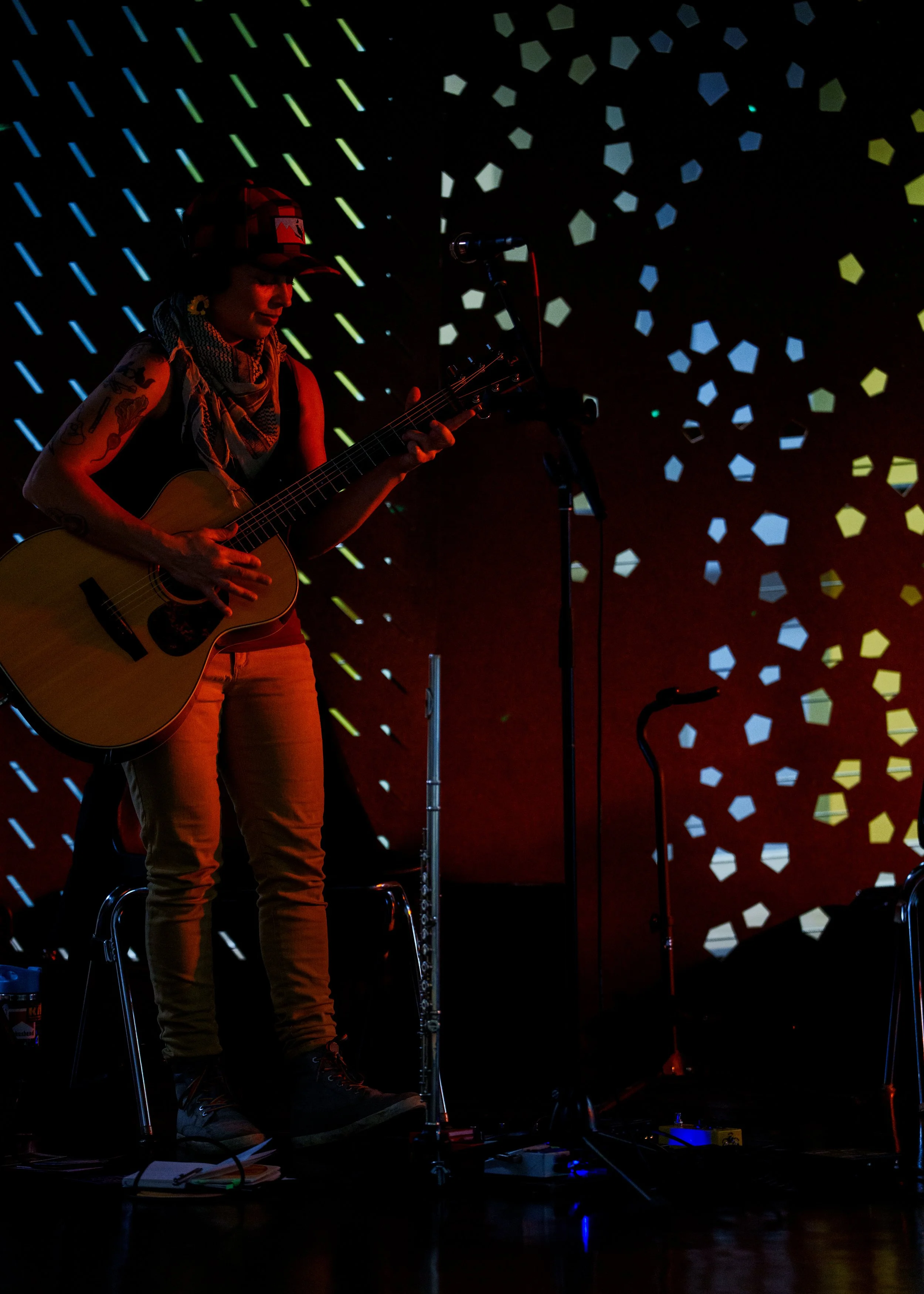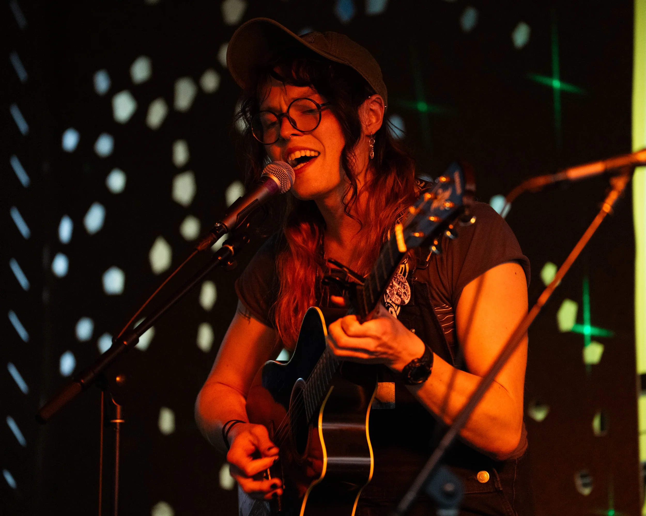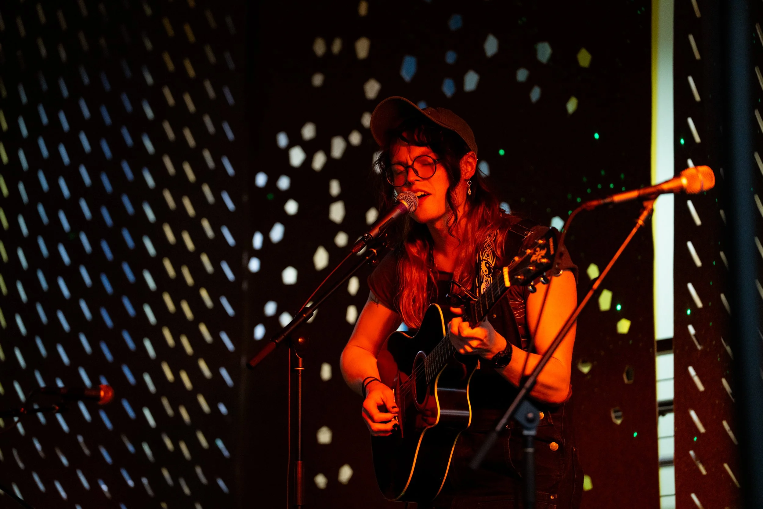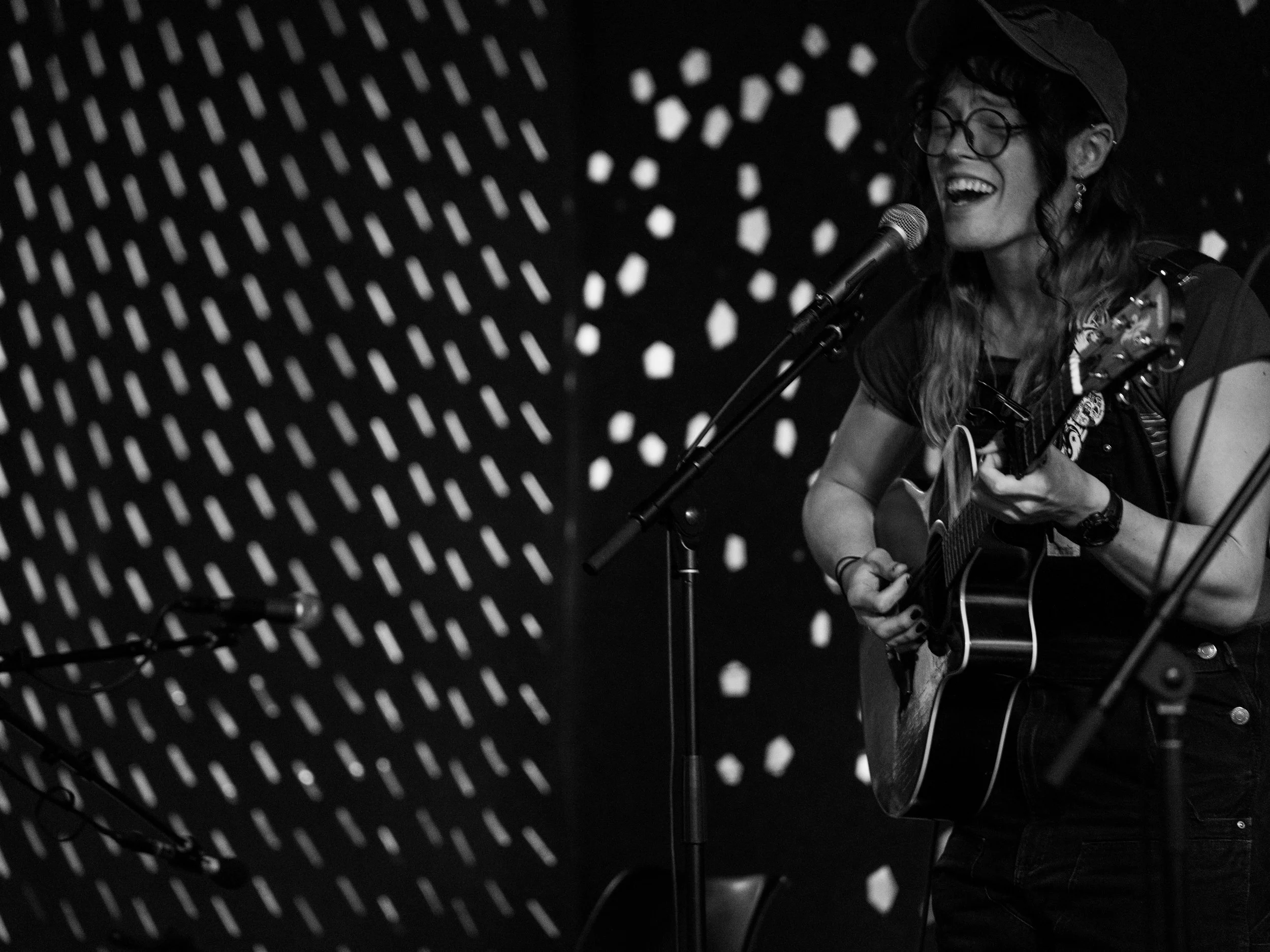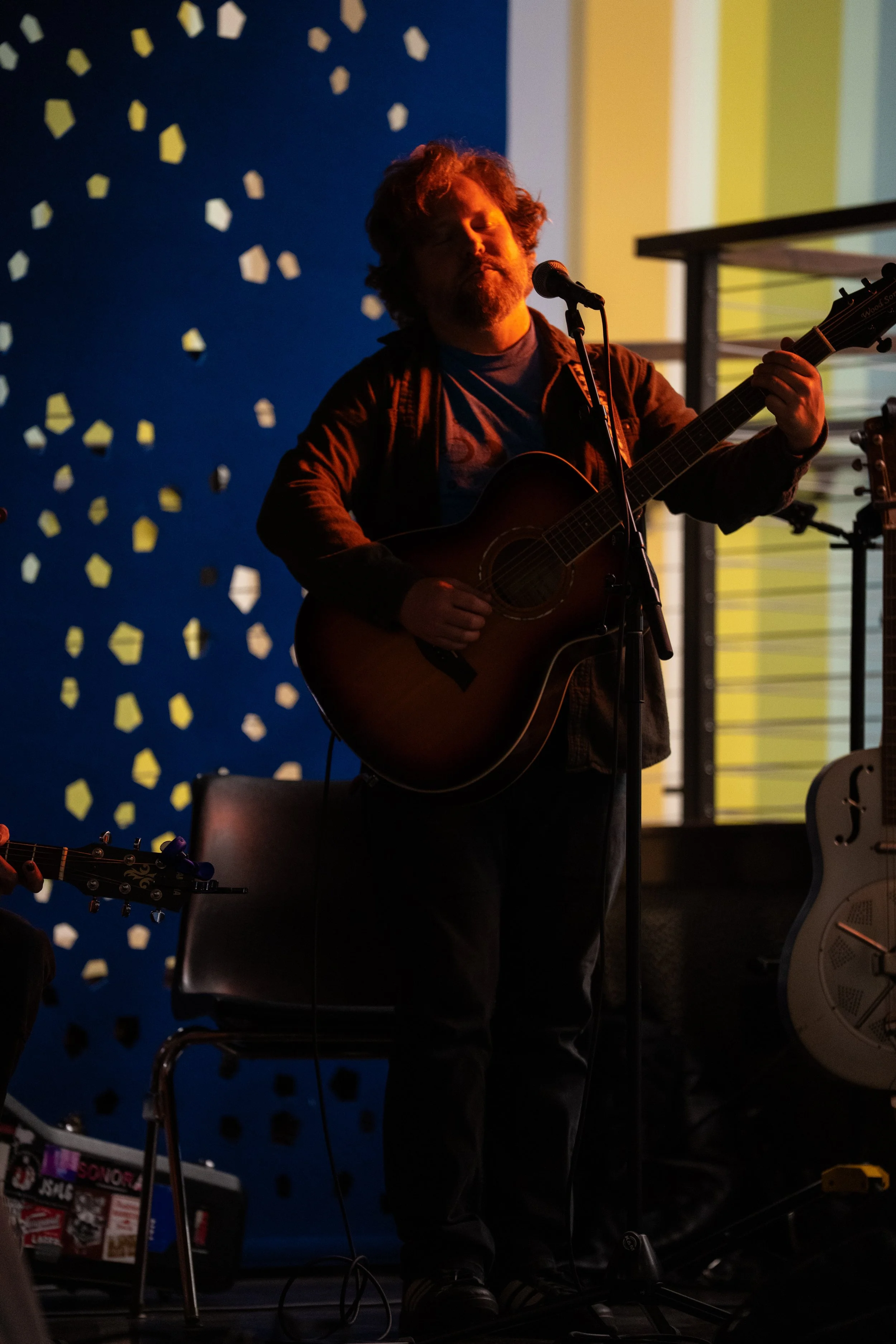 A songwriters' round sponsored by the Earlham Collage Music Department, hosted November of 2025 featuring Anna p.s. , Elijah Baston, and Cyrus Garretson.