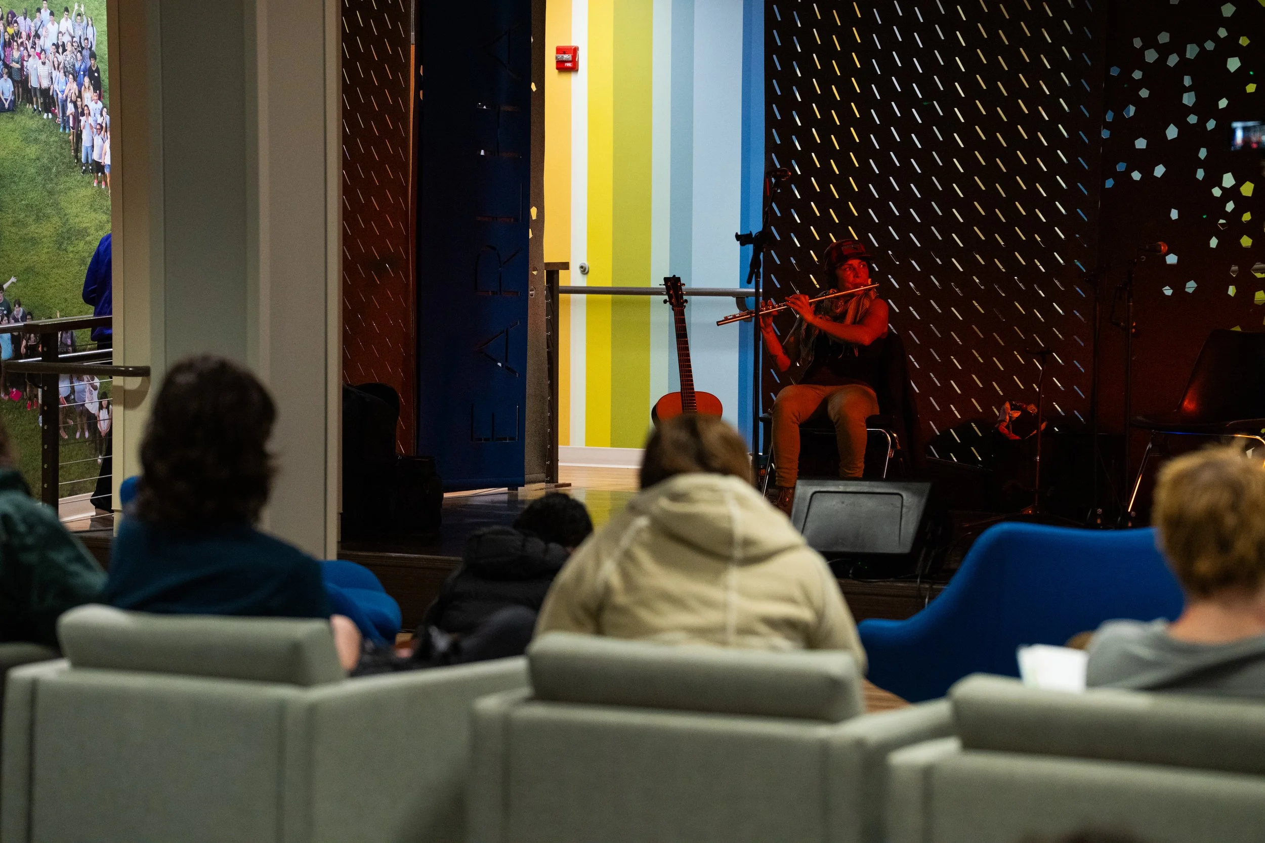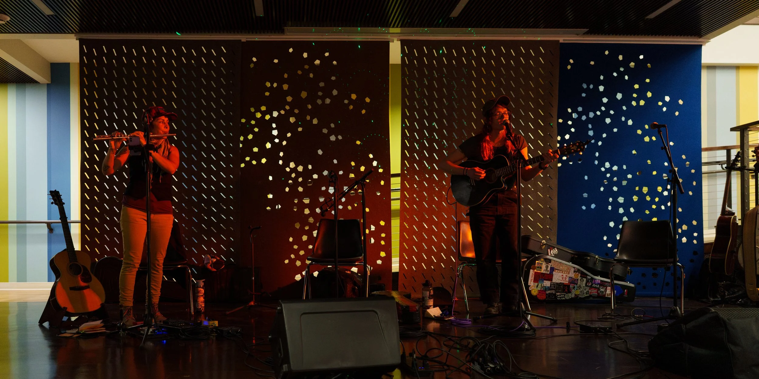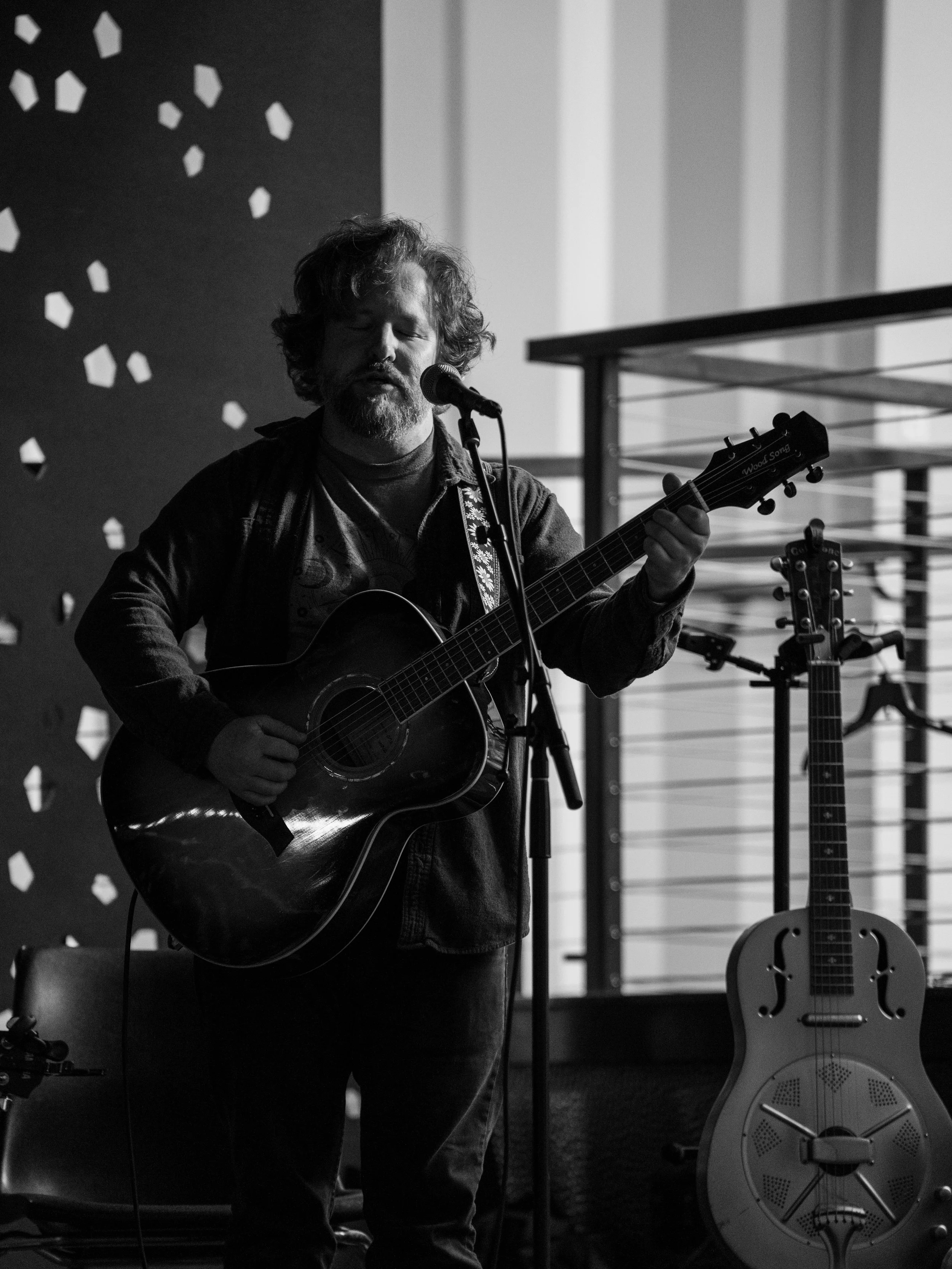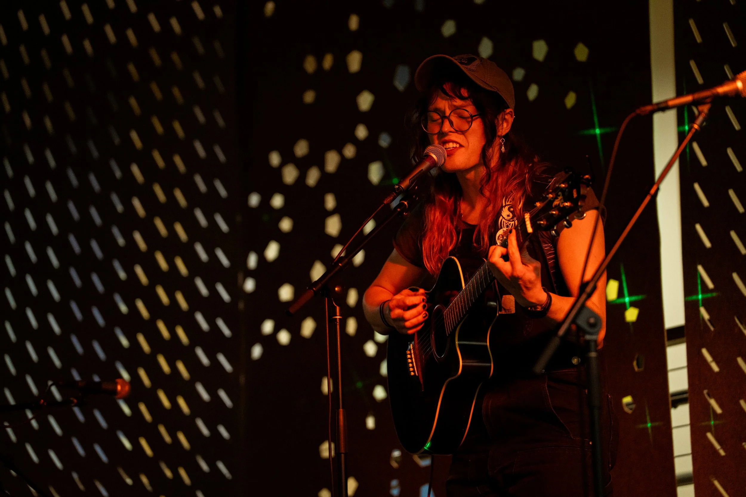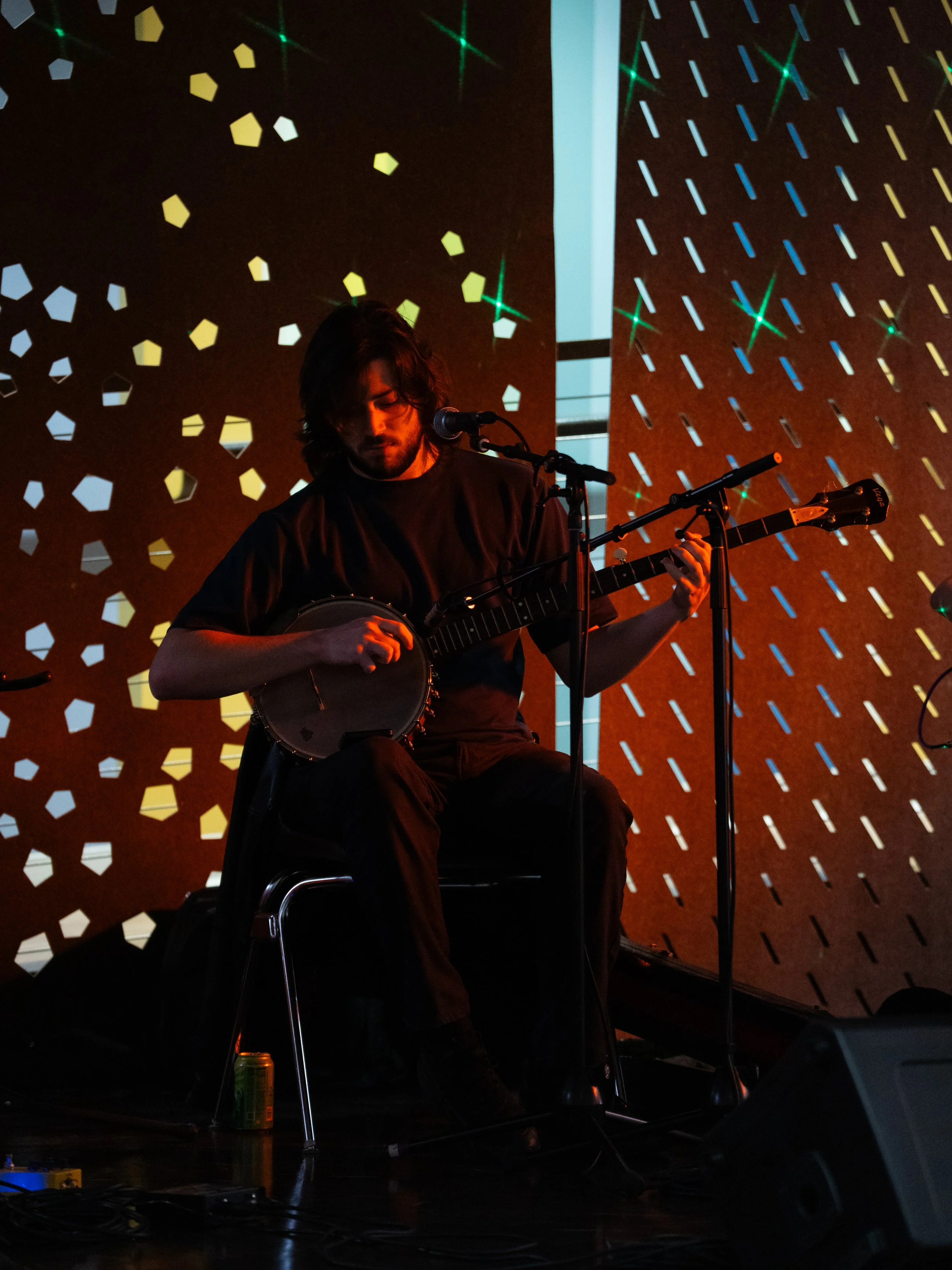 A songwriters' round sponsored by the Earlham Collage Music Department, hosted November of 2025 featuring Anna p.s. , Elijah Baston, and Cyrus Garretson.