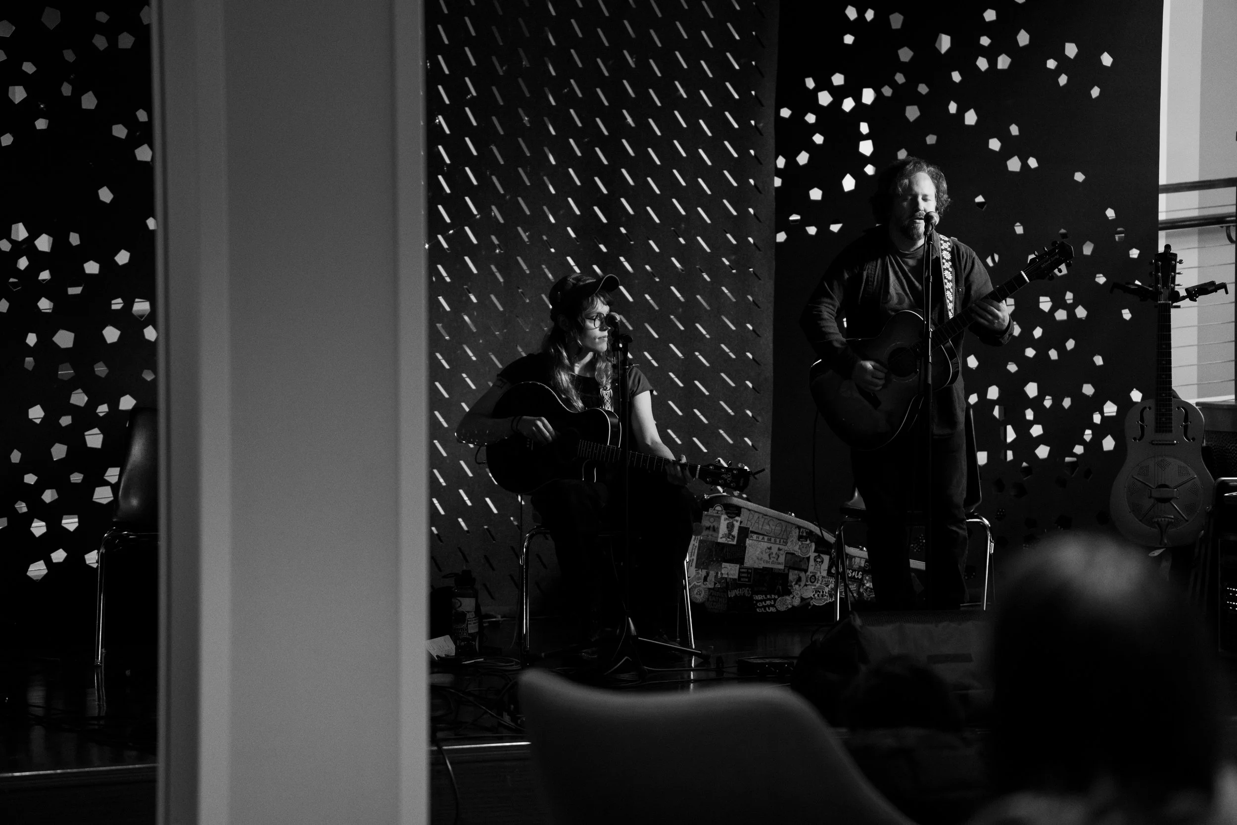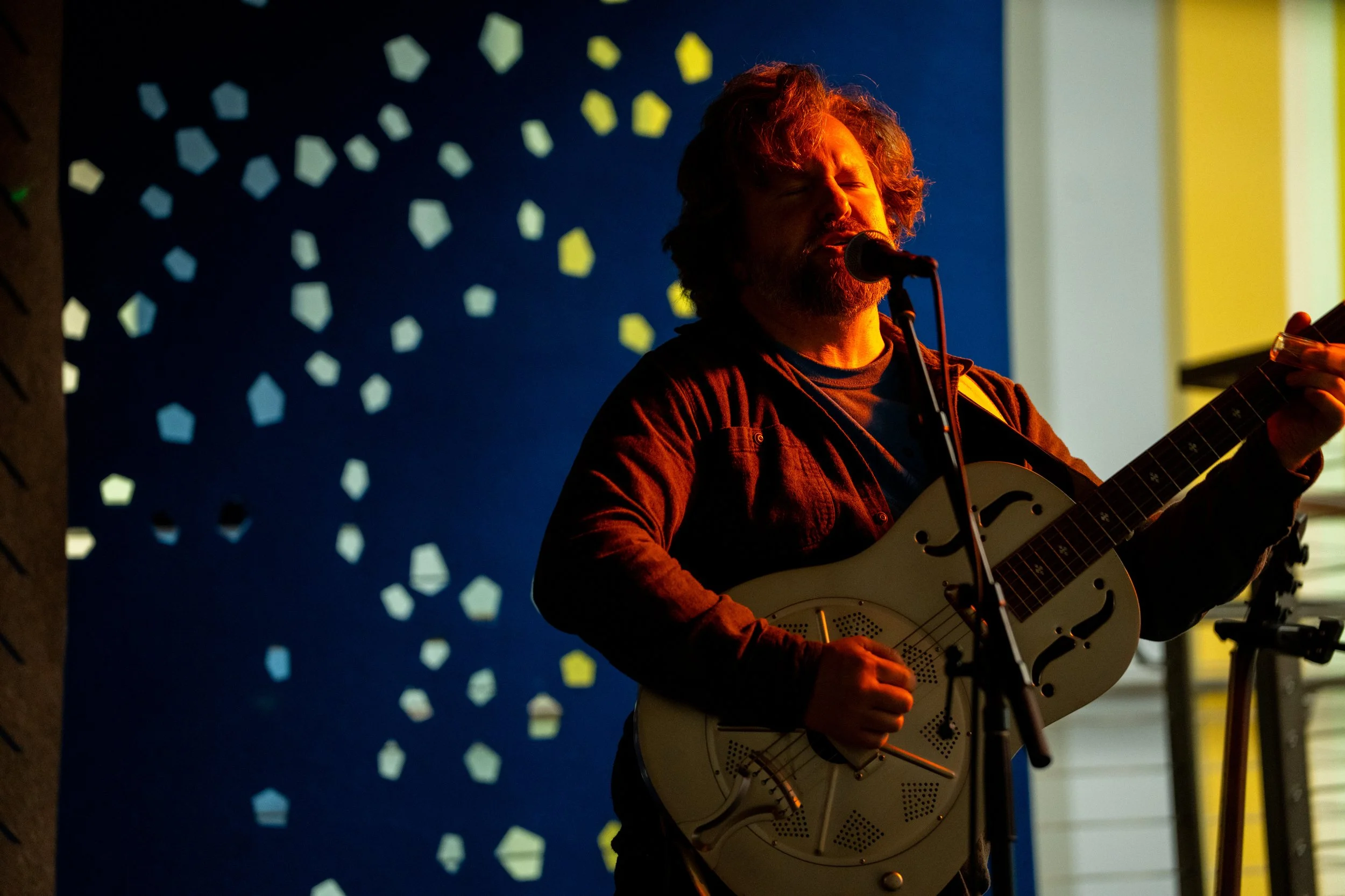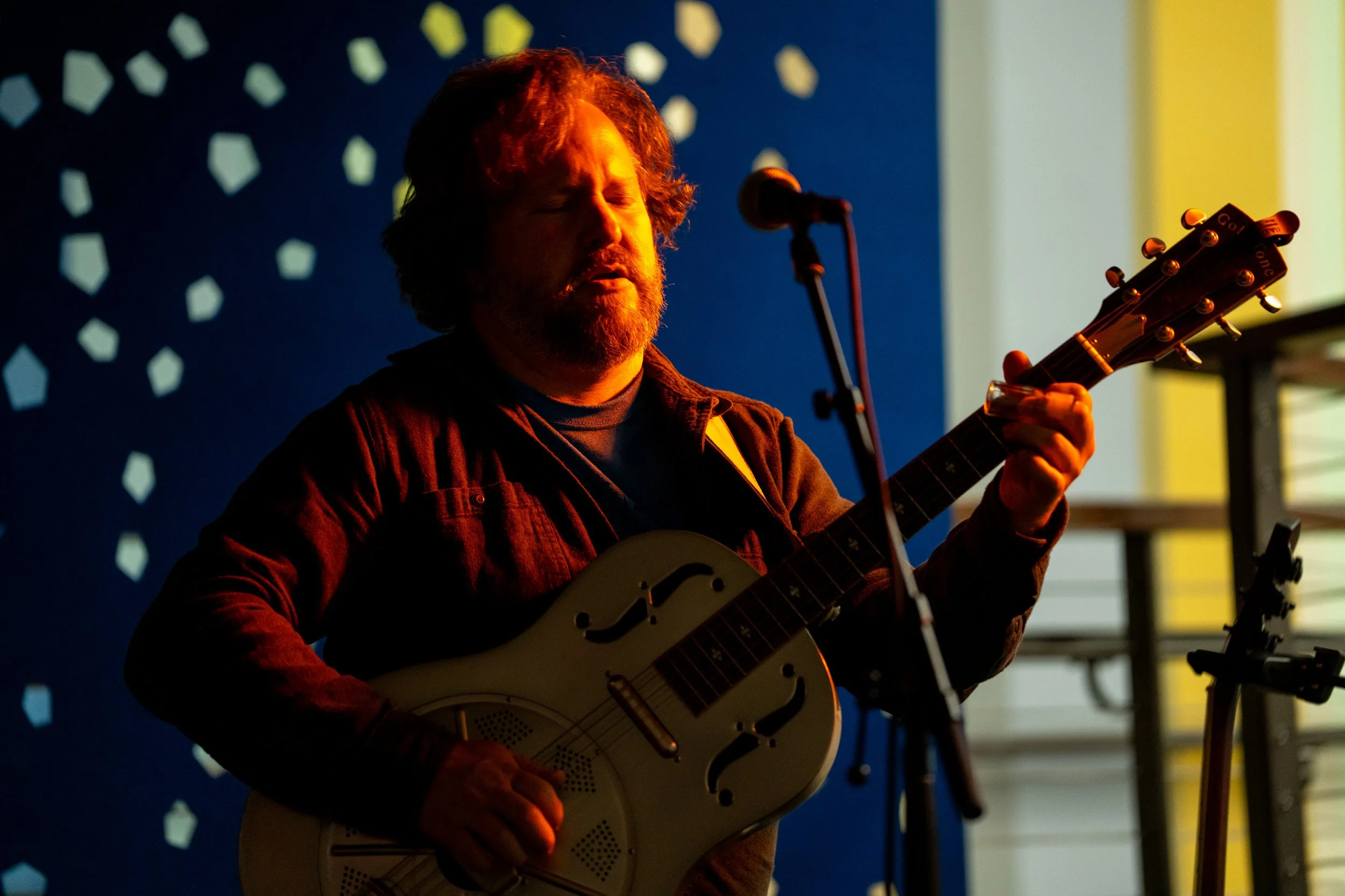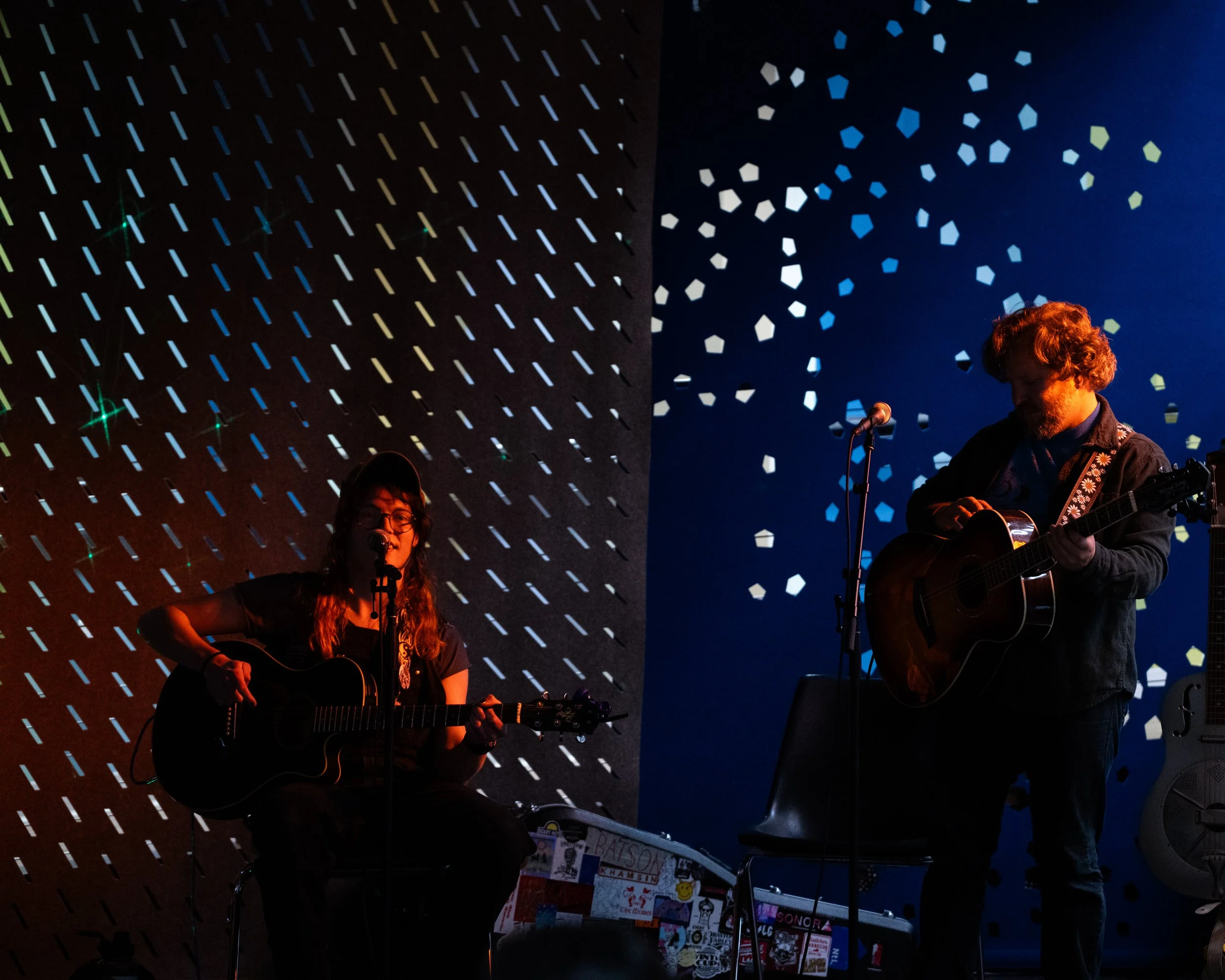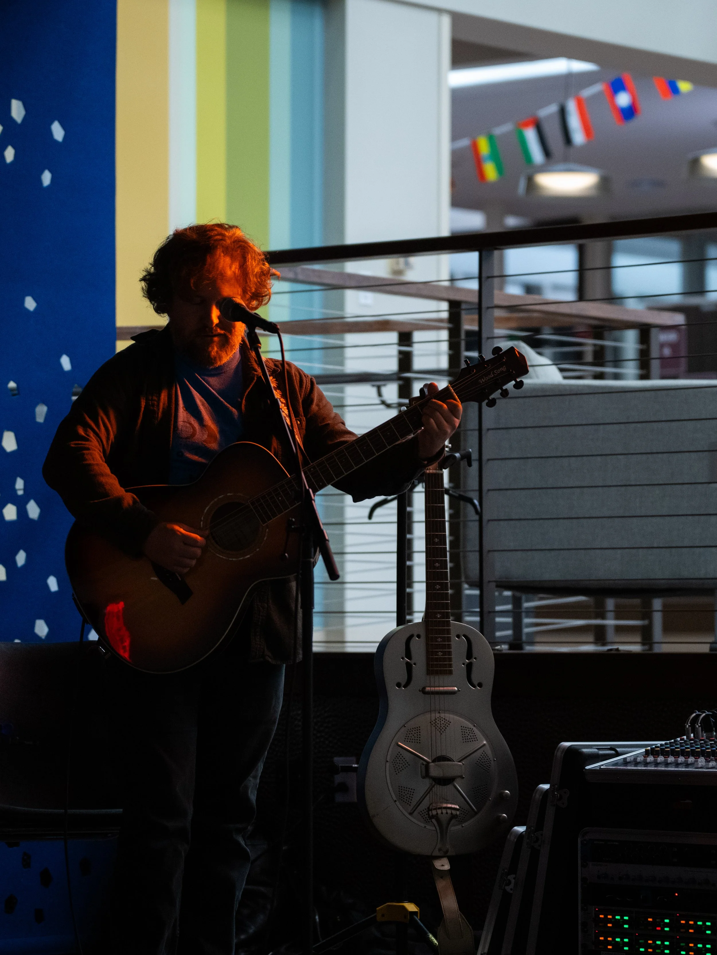 A songwriters' round sponsored by the Earlham Collage Music Department, hosted November of 2025 featuring Anna p.s. , Elijah Baston, and Cyrus Garretson.