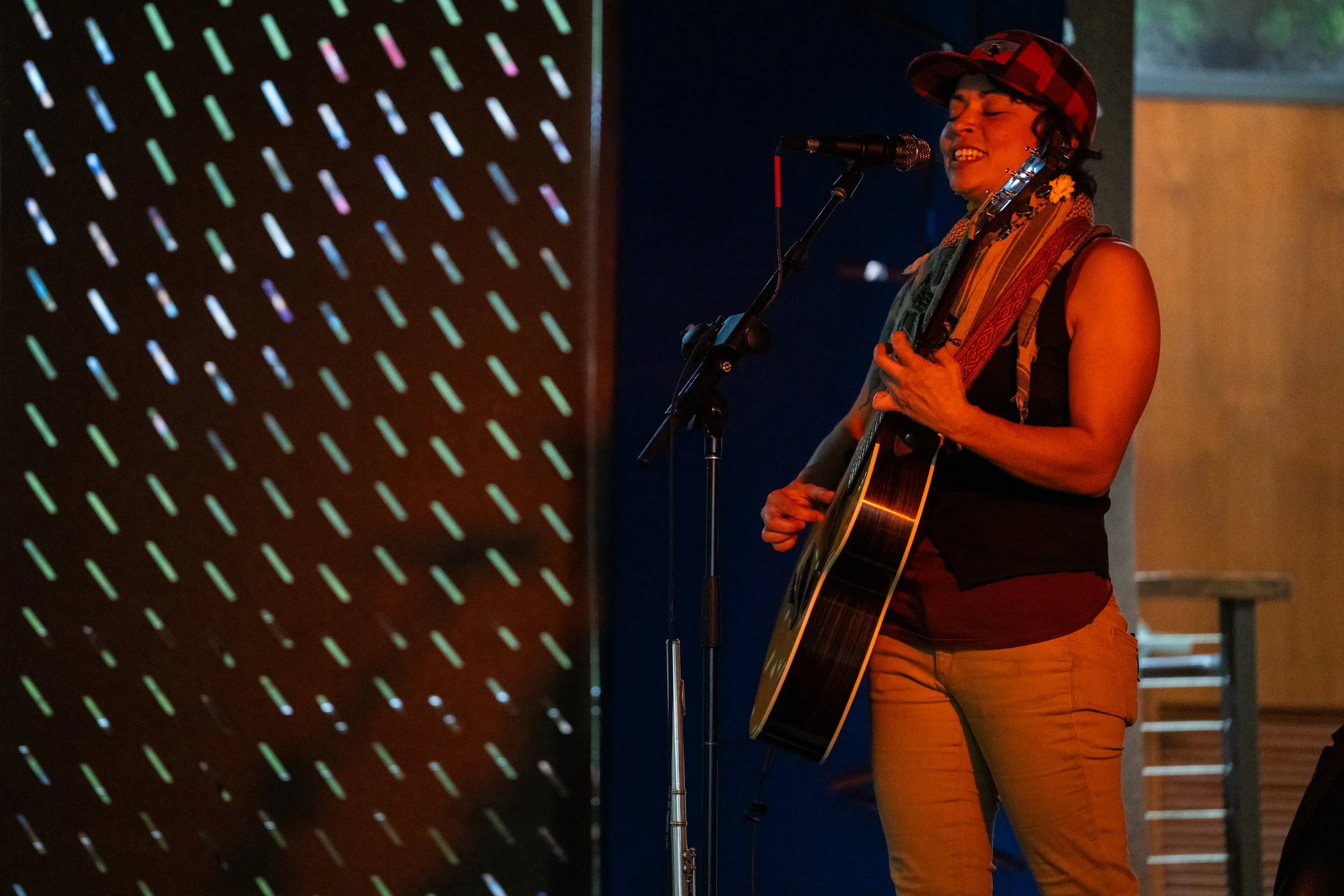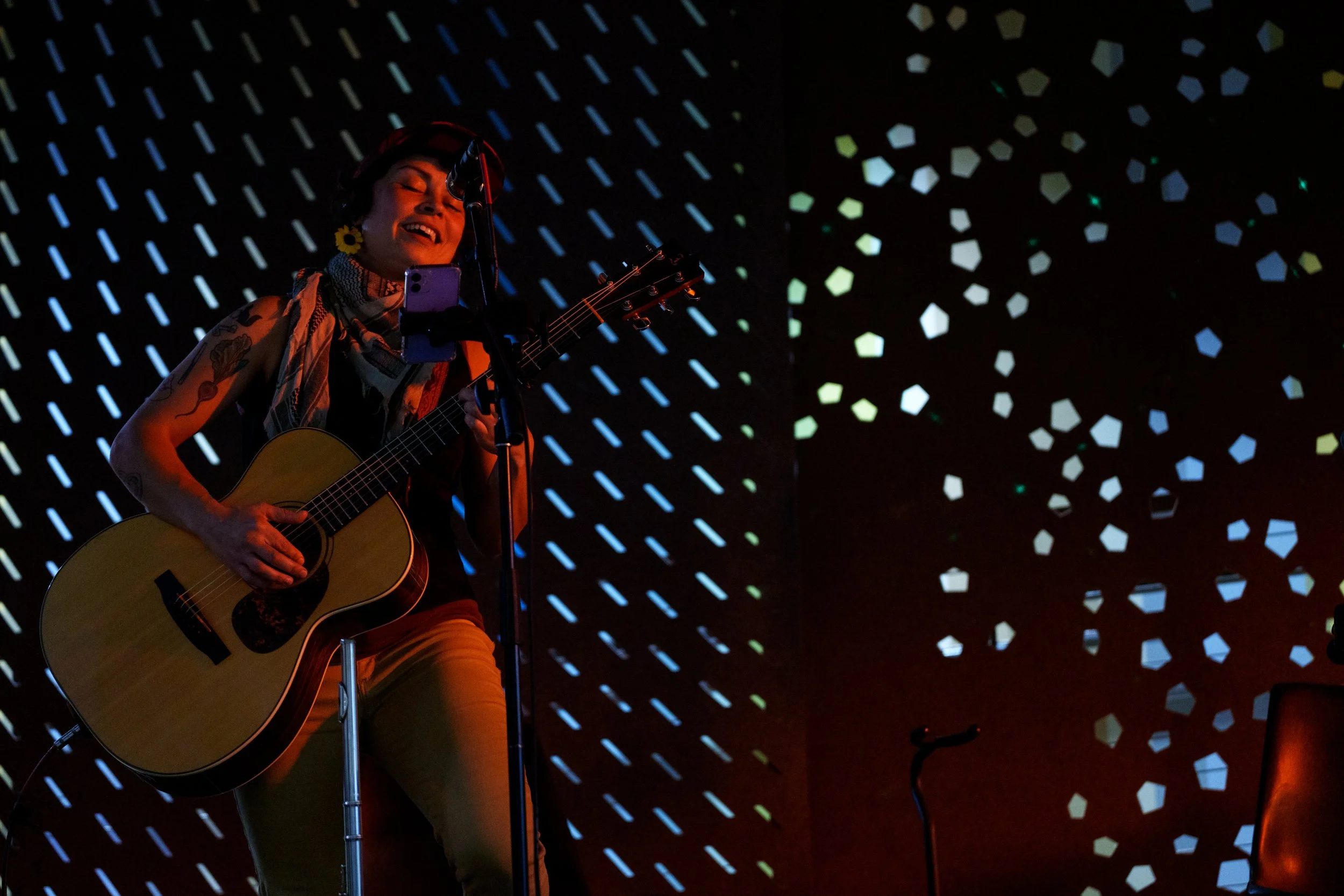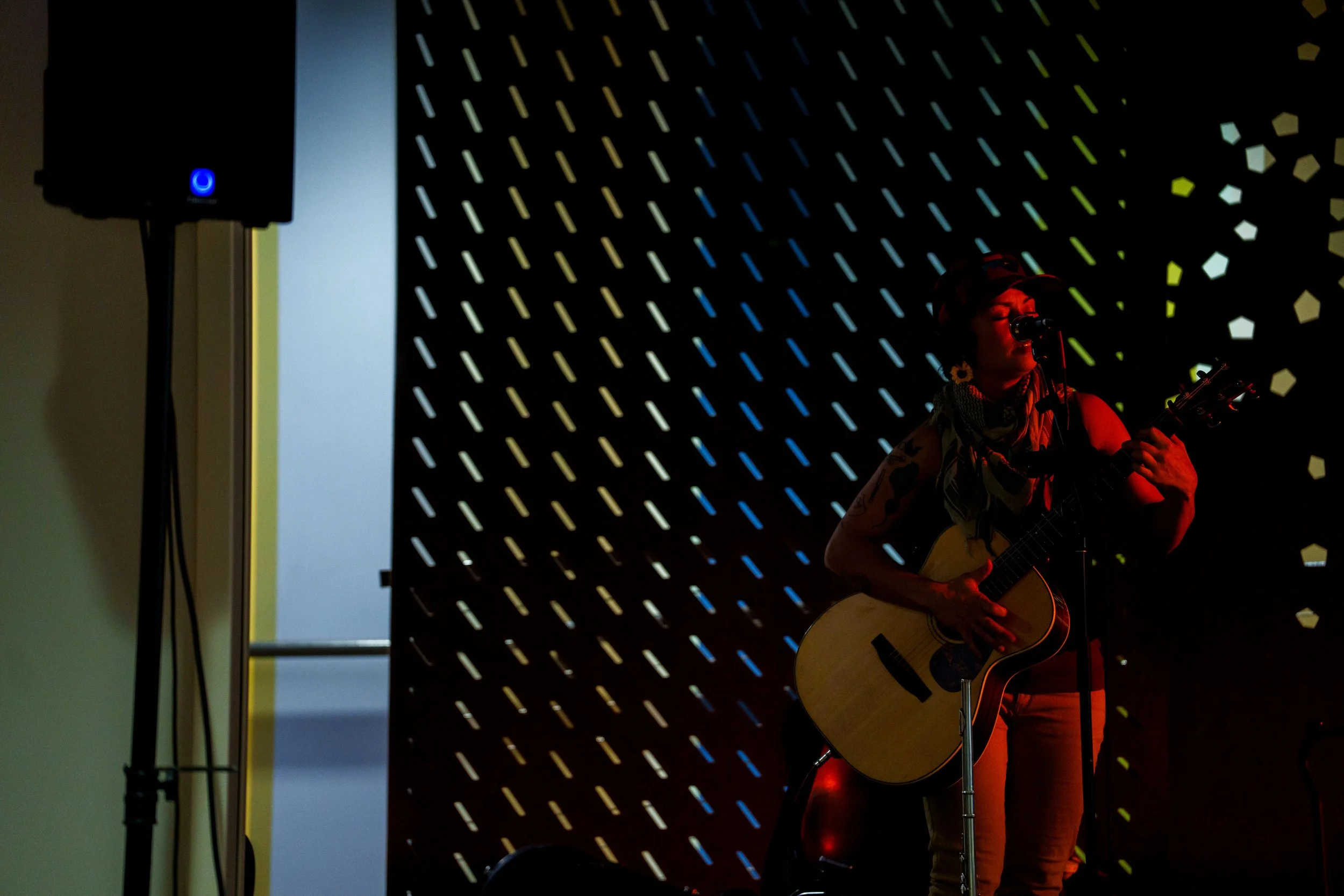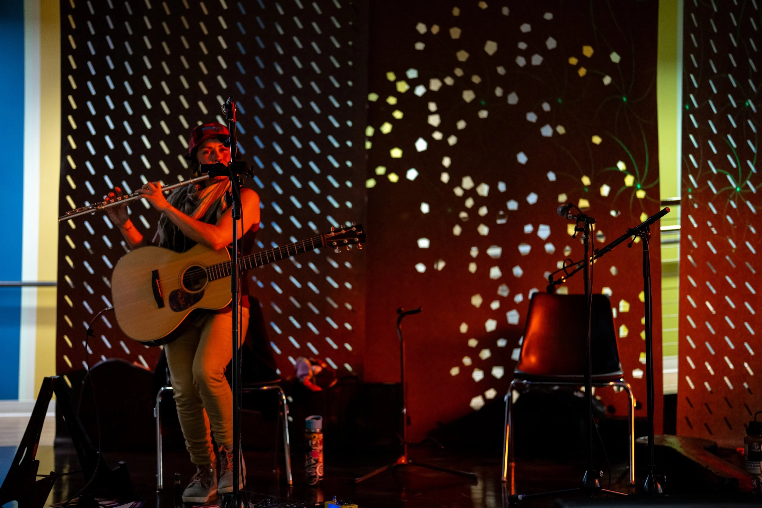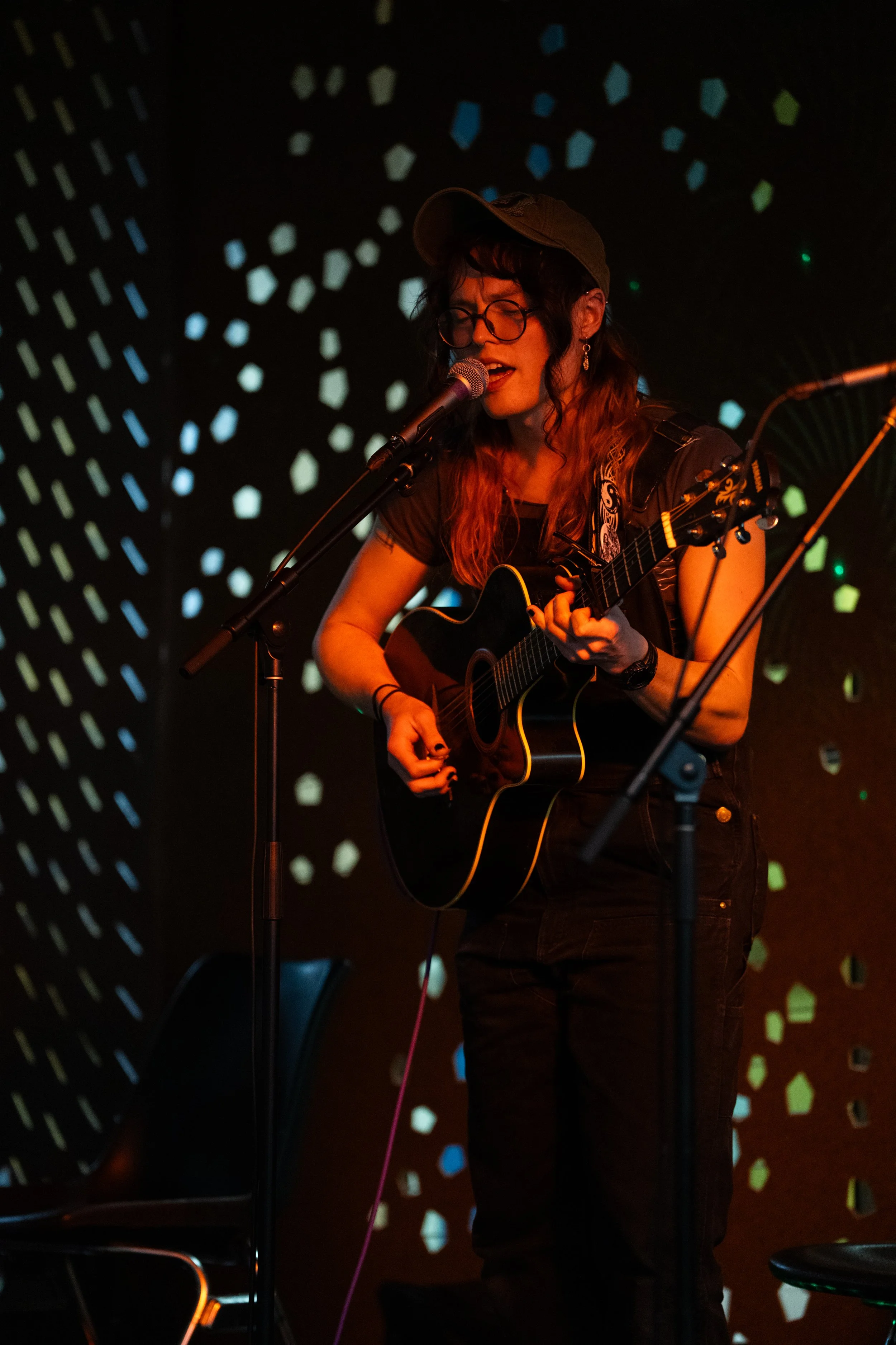 A songwriters' round sponsored by the Earlham Collage Music Department, hosted November of 2025 featuring Anna p.s. , Elijah Baston, and Cyrus Garretson.