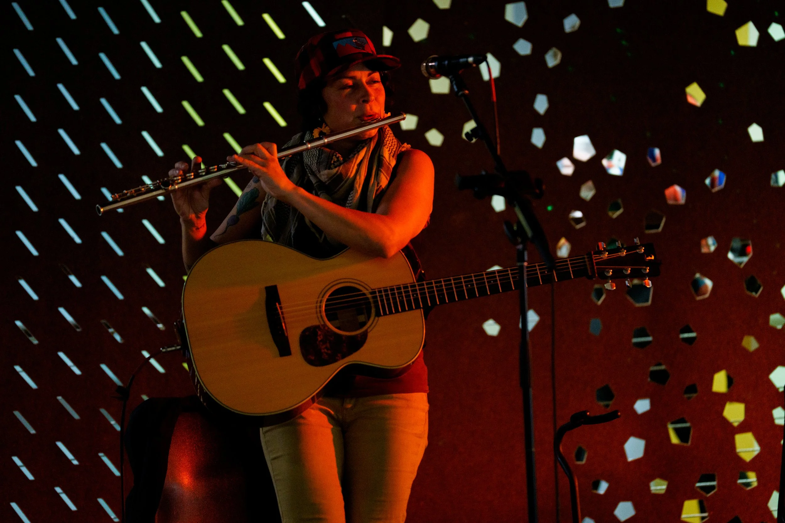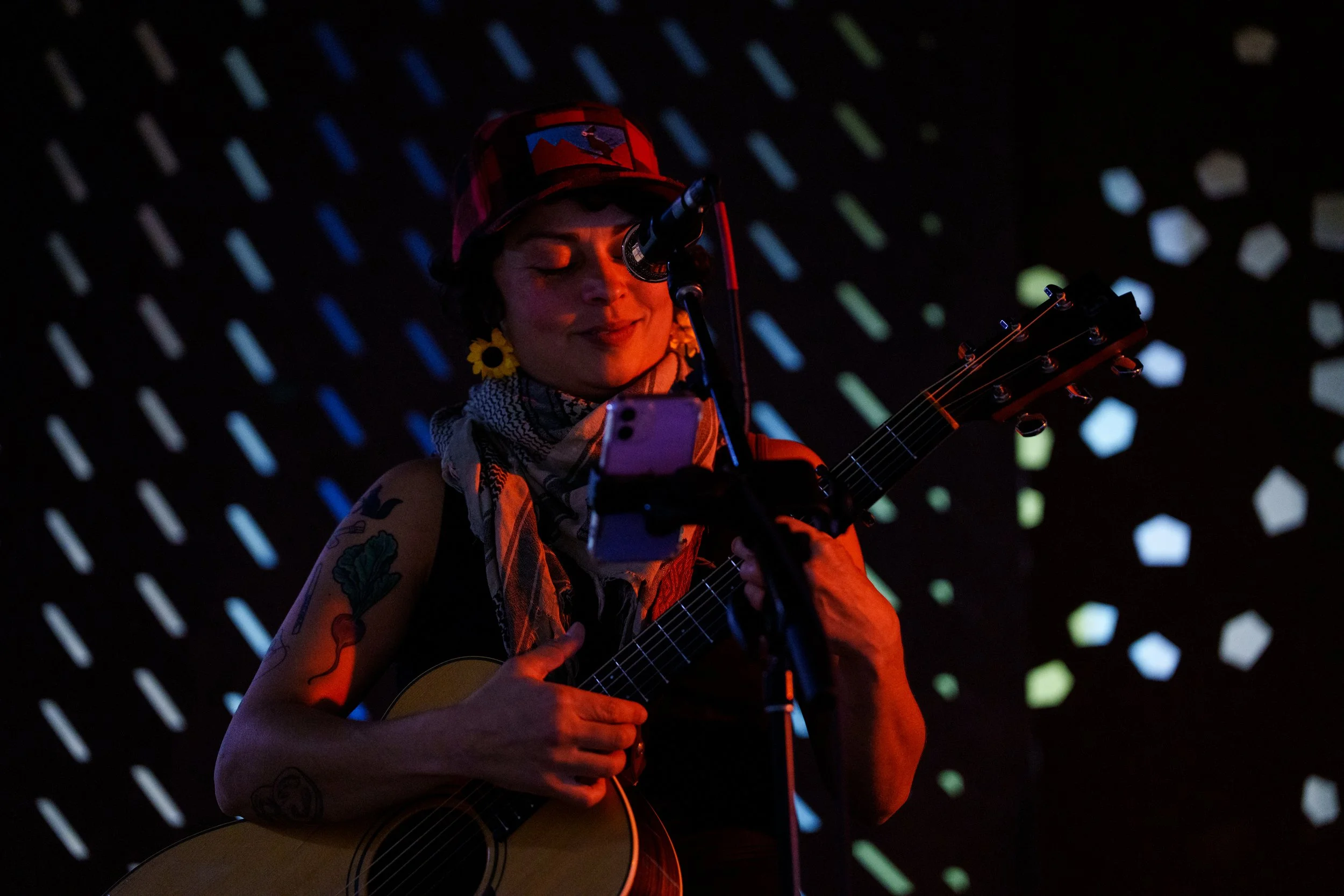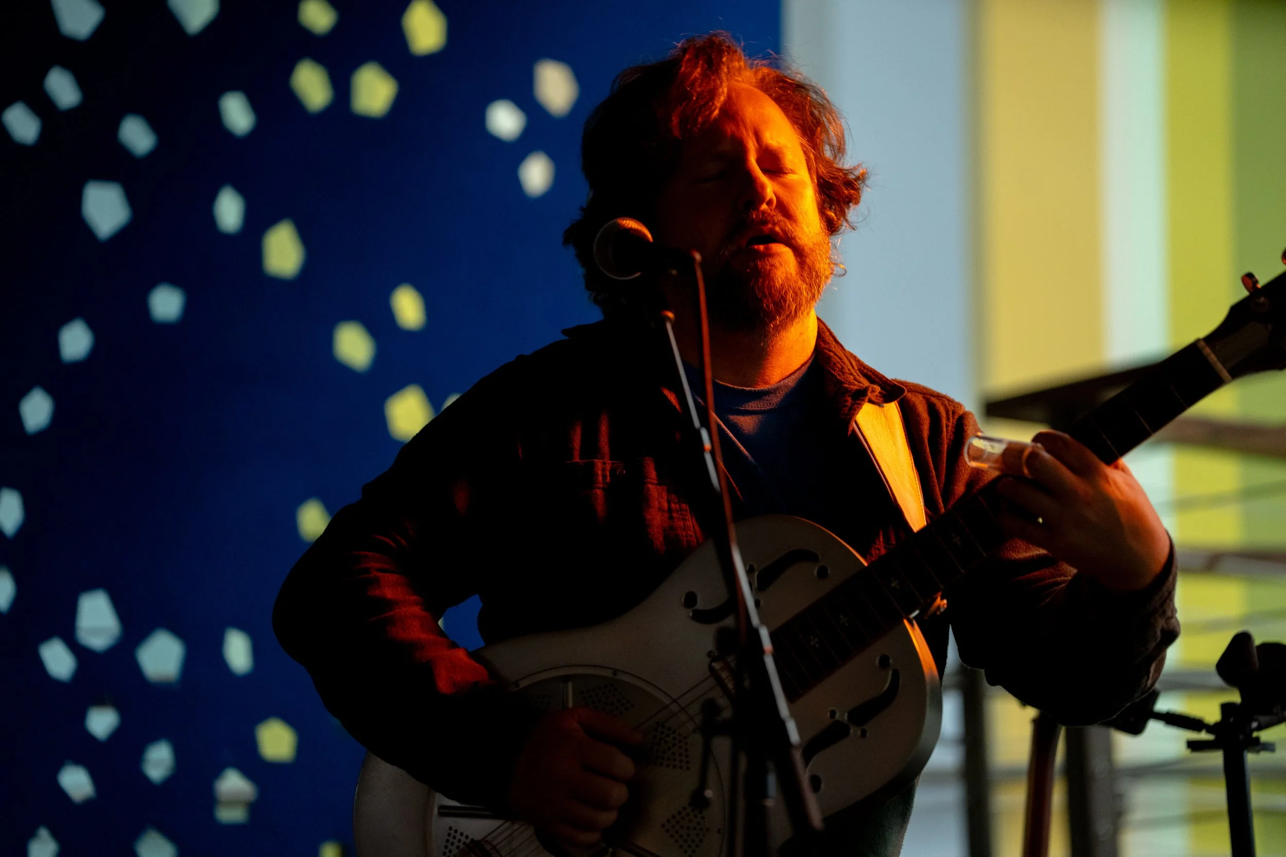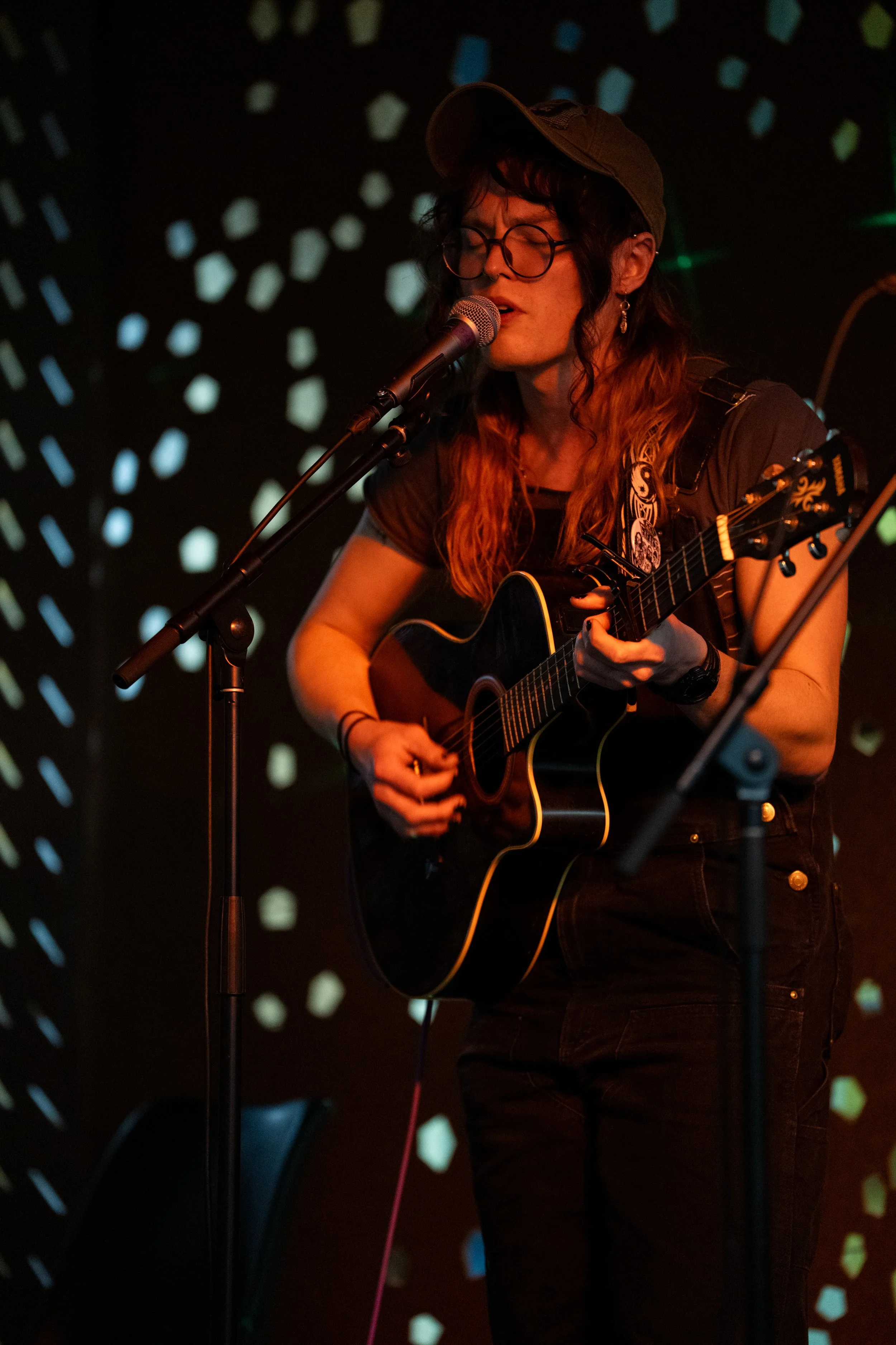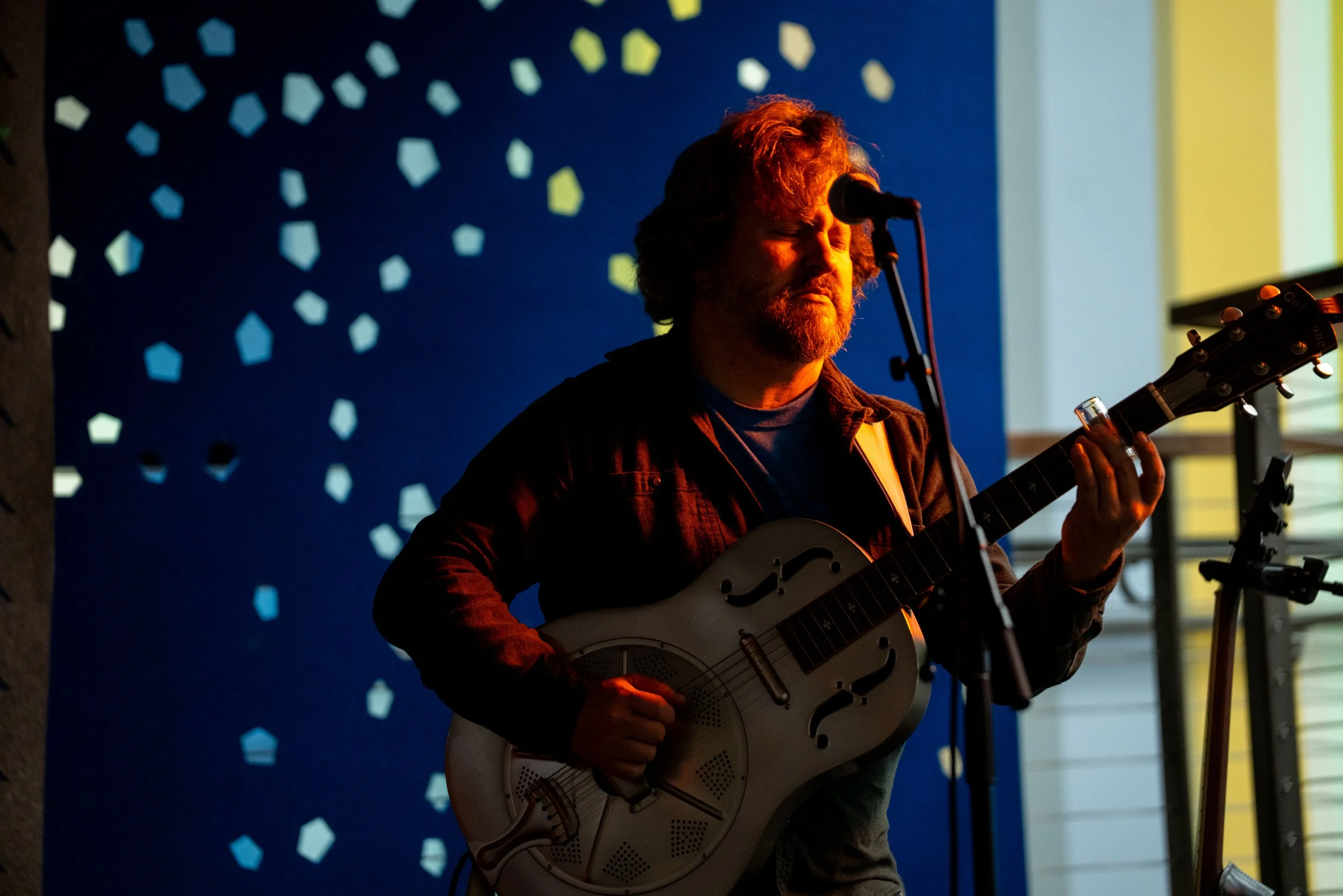 A songwriters' round sponsored by the Earlham Collage Music Department, hosted November of 2025 featuring Anna p.s. , Elijah Baston, and Cyrus Garretson.