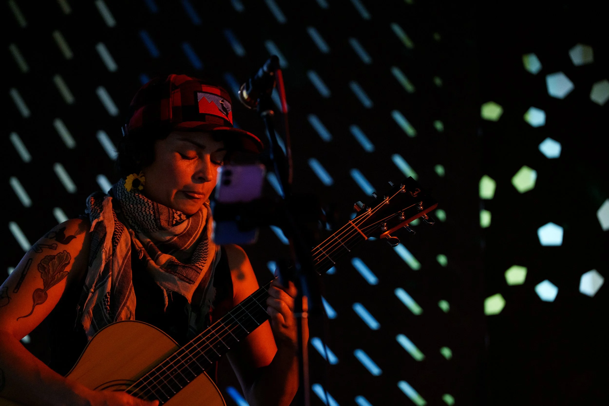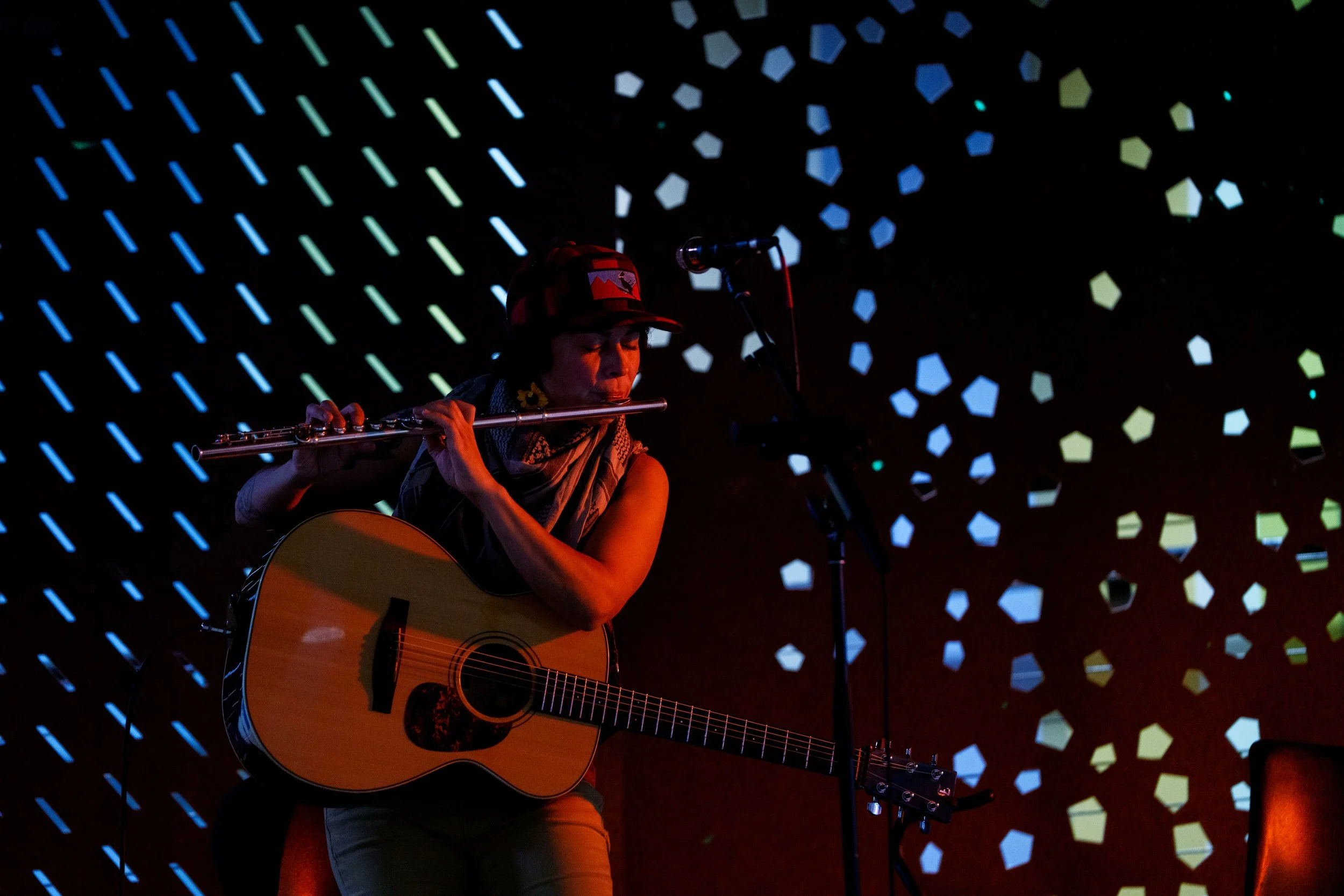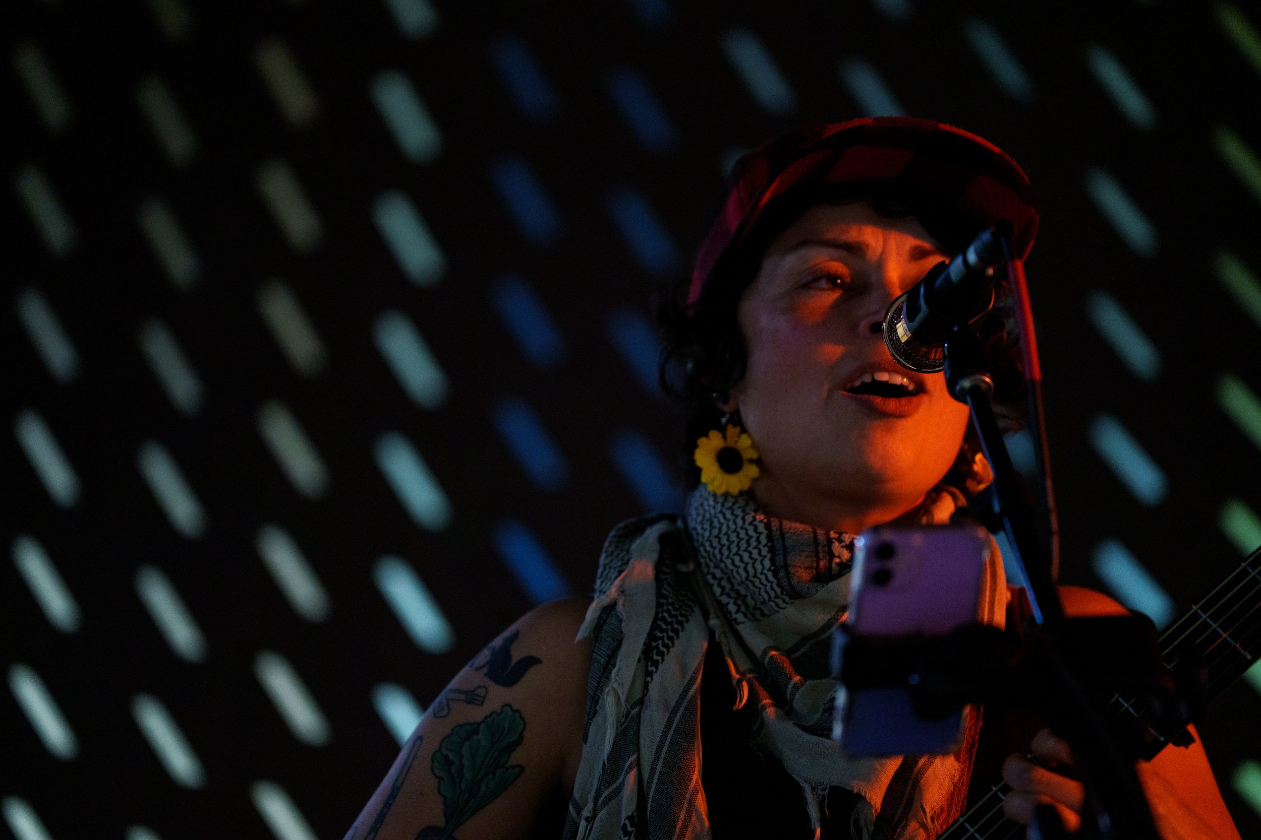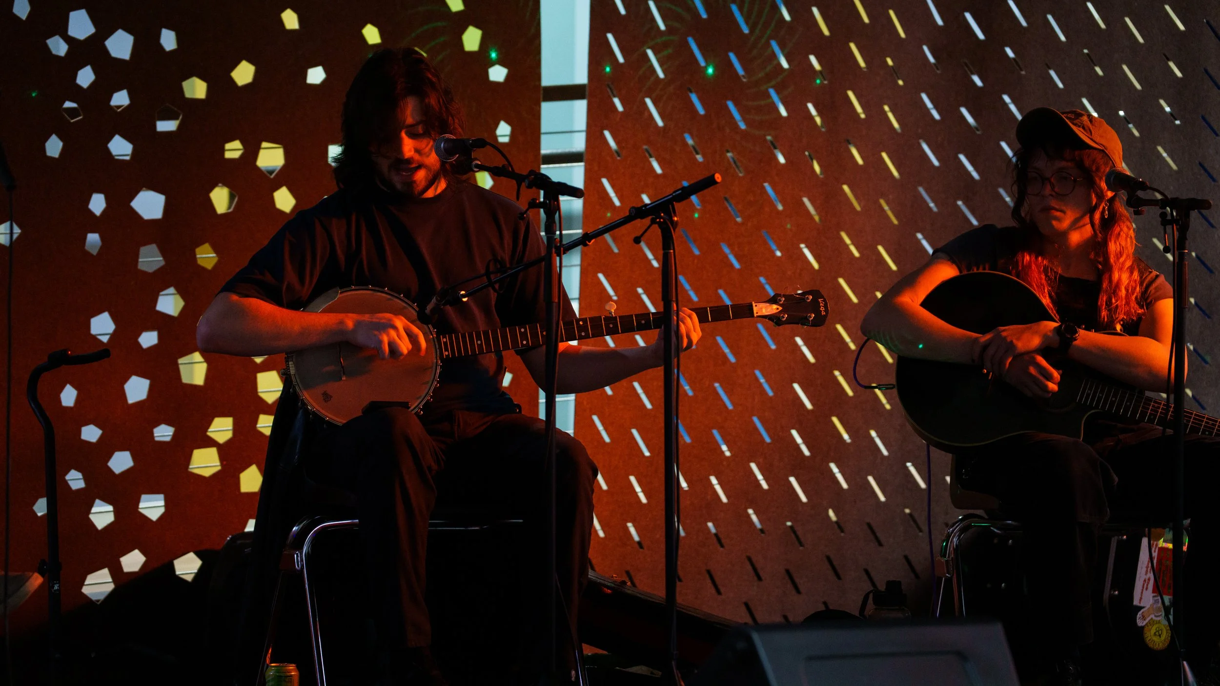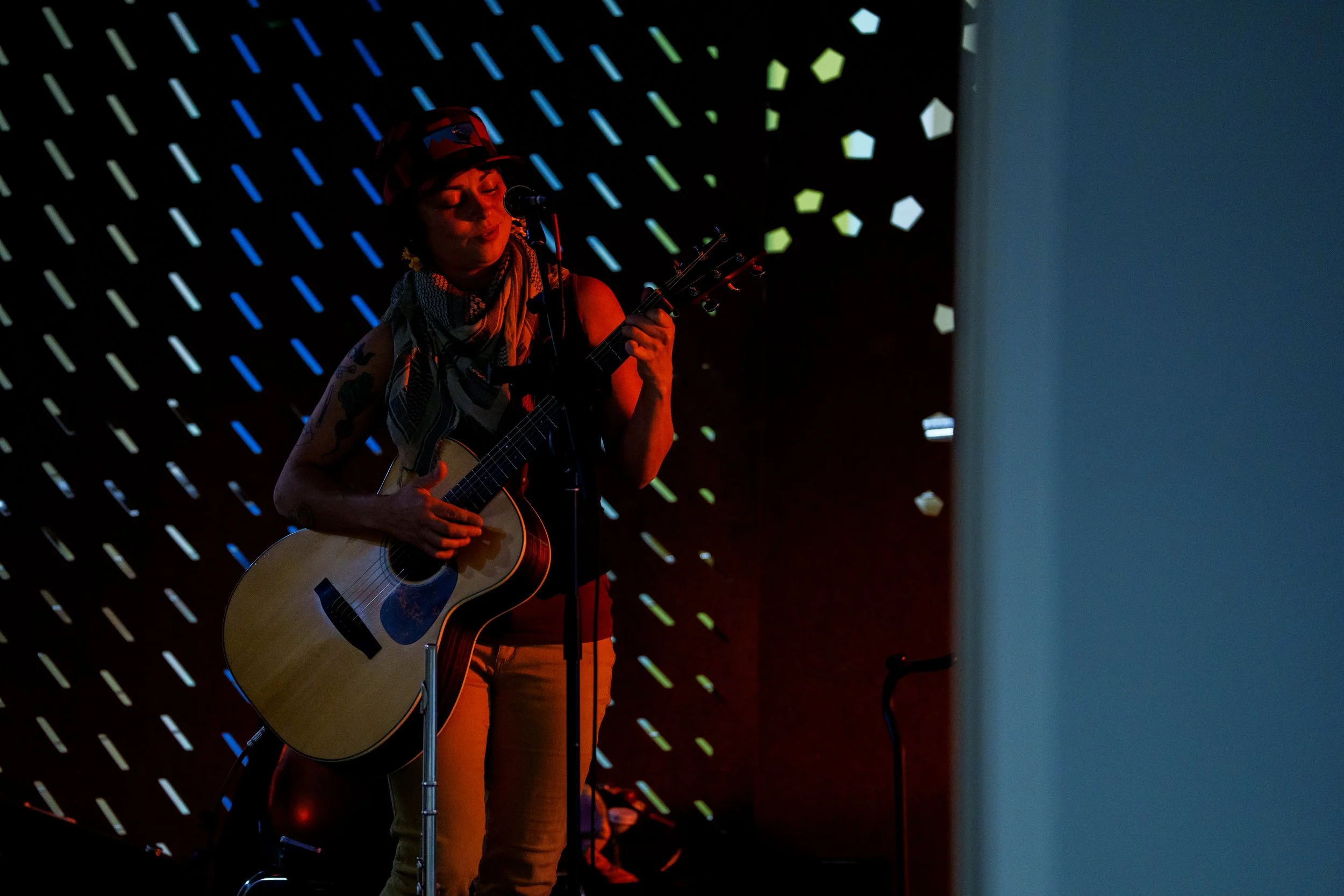A songwriters' round sponsored by the Earlham Collage Music Department, hosted November of 2025 featuring Anna p.s. , Elijah Baston, and Cyrus Garretson.