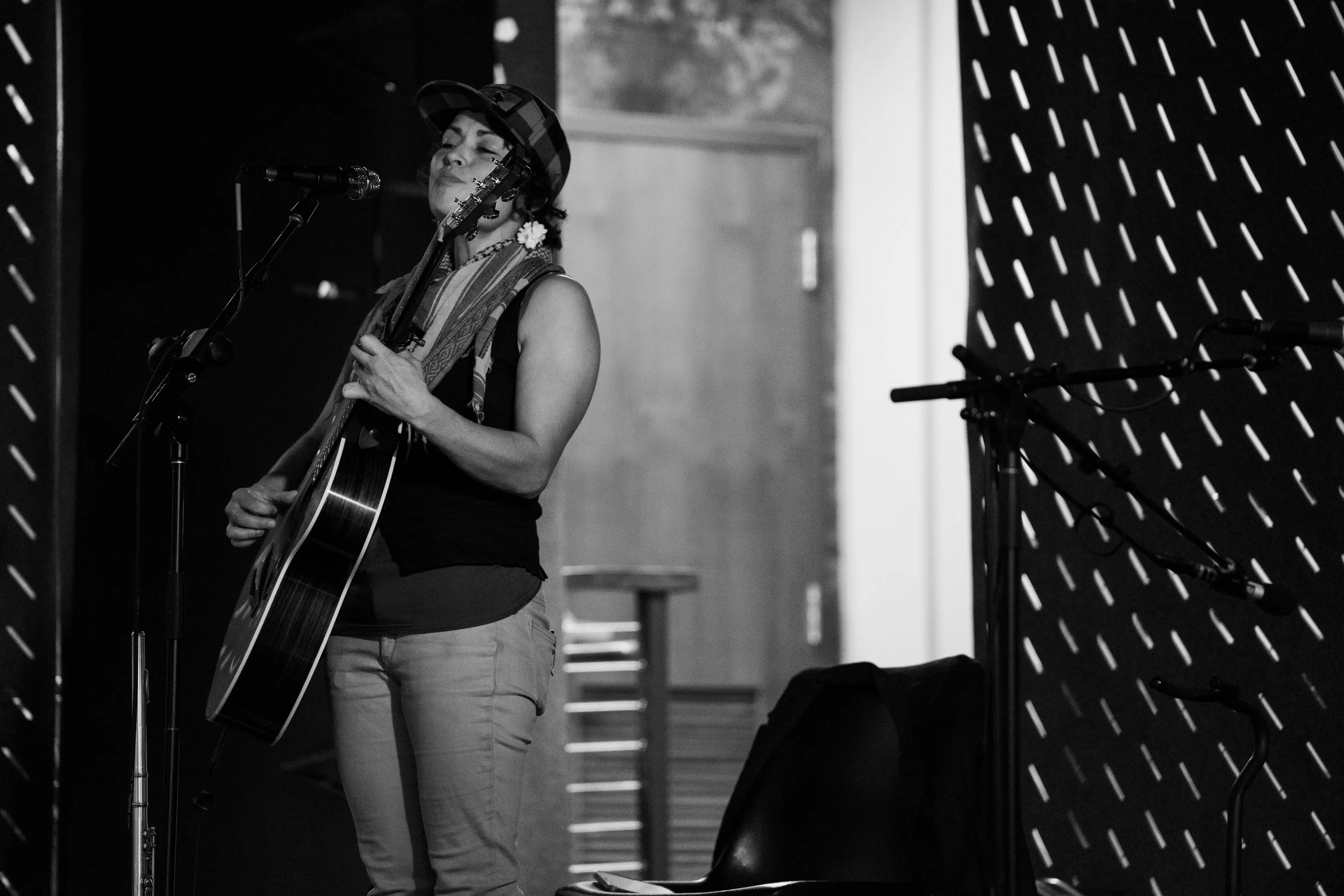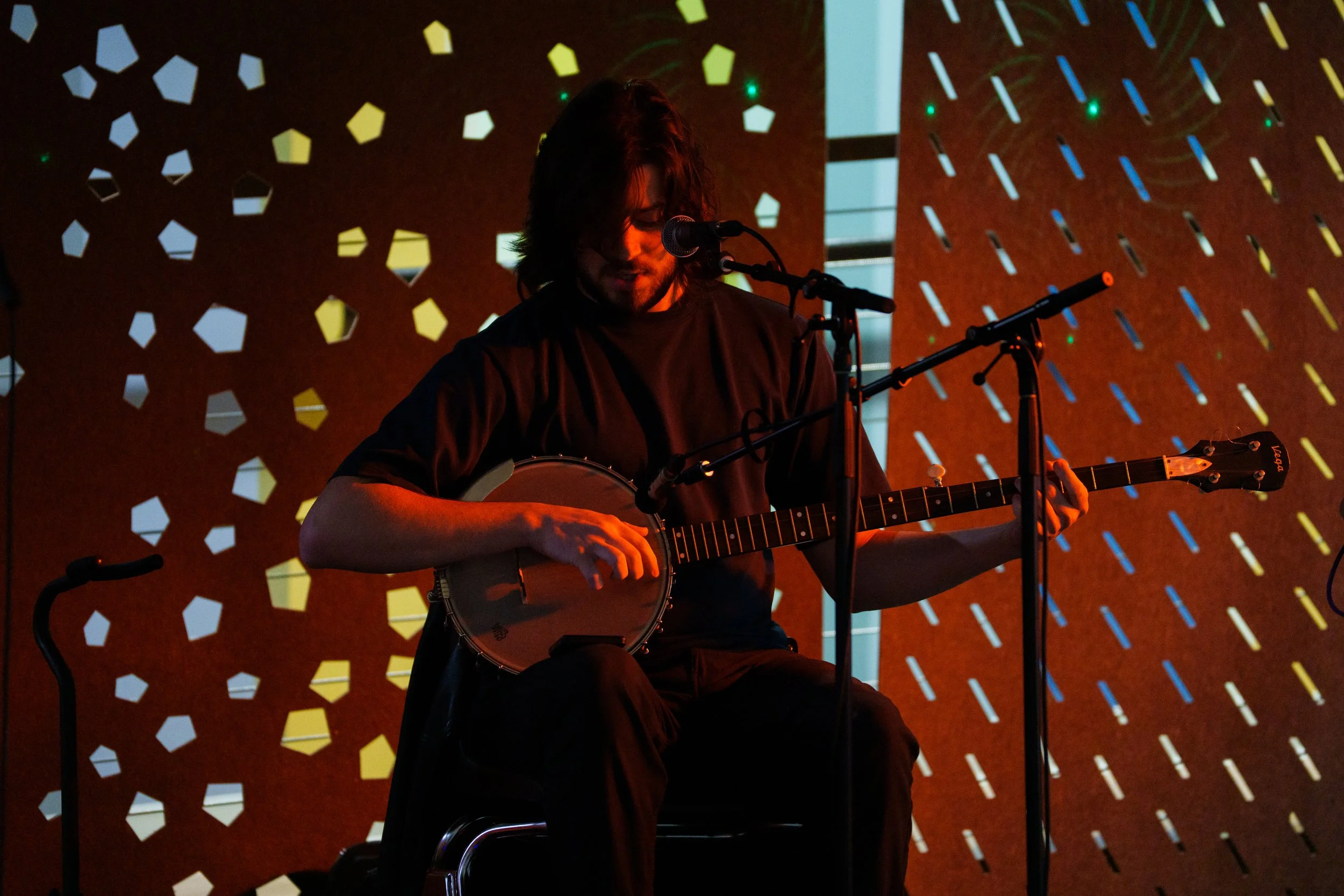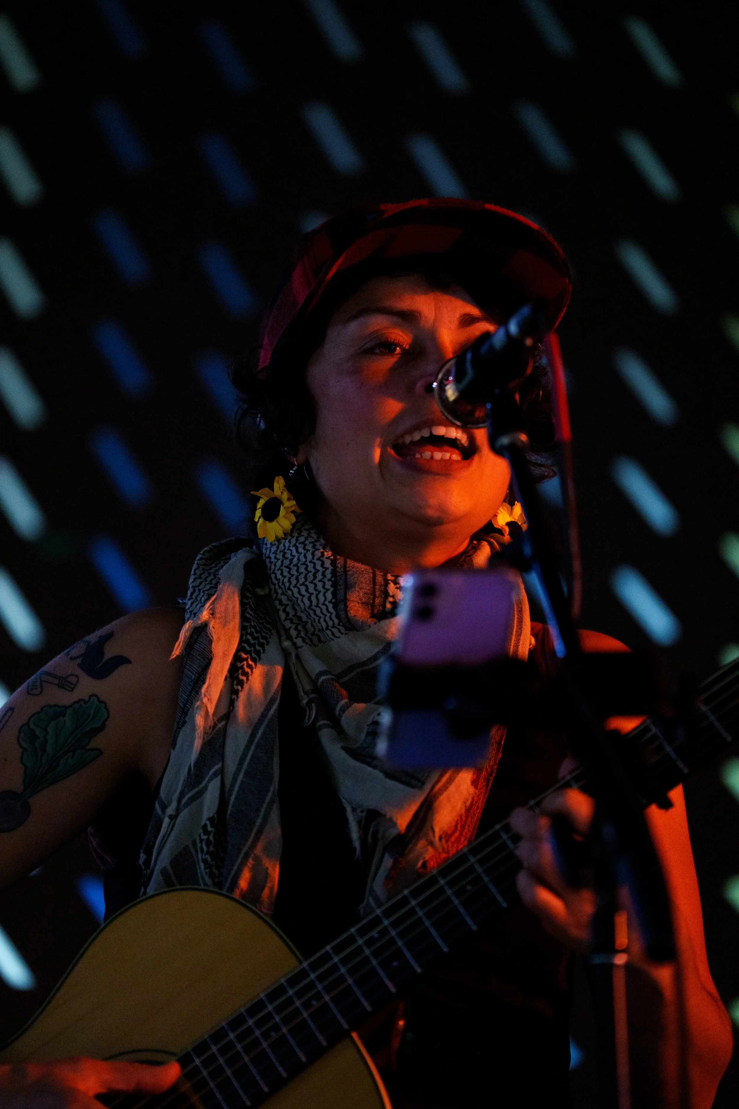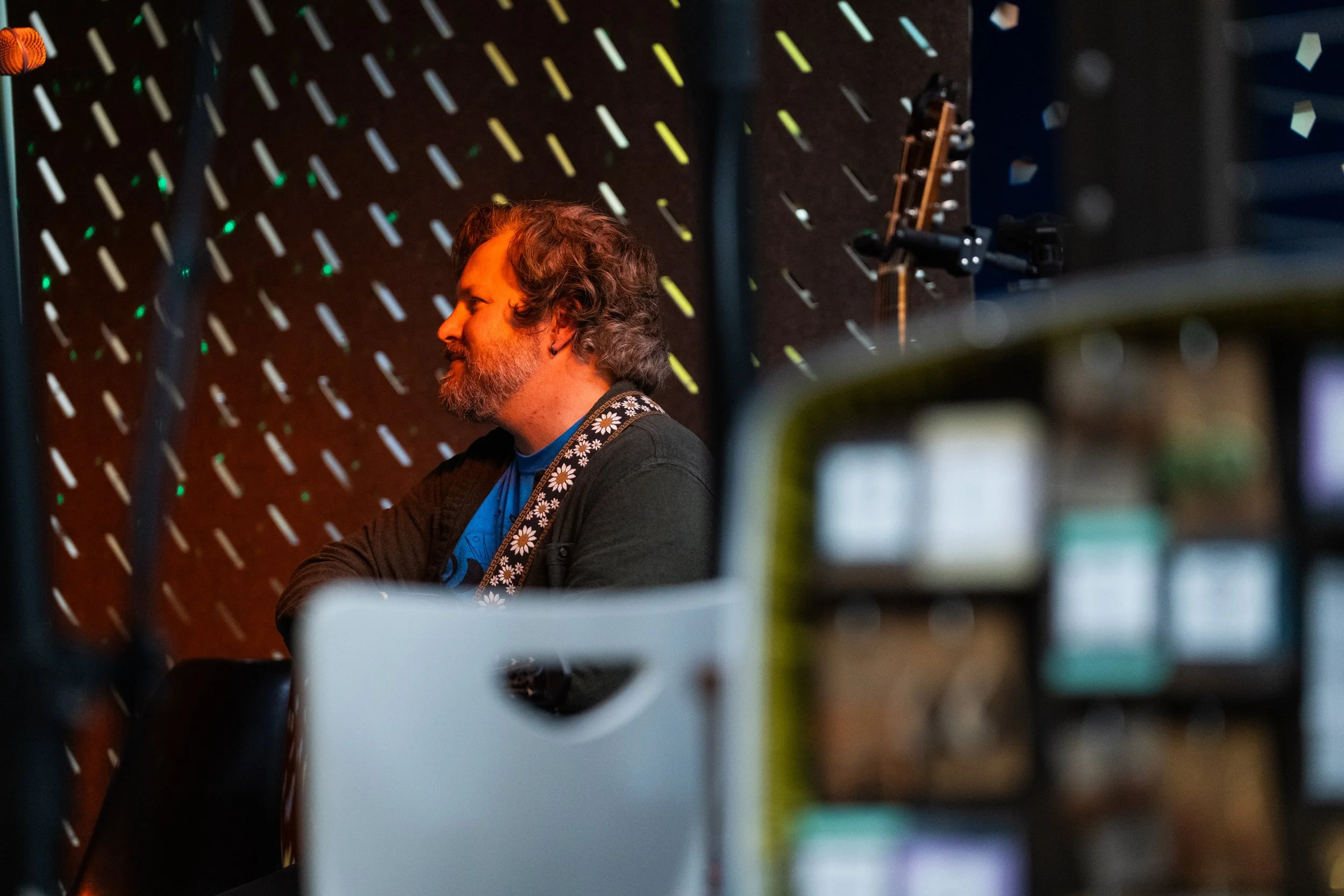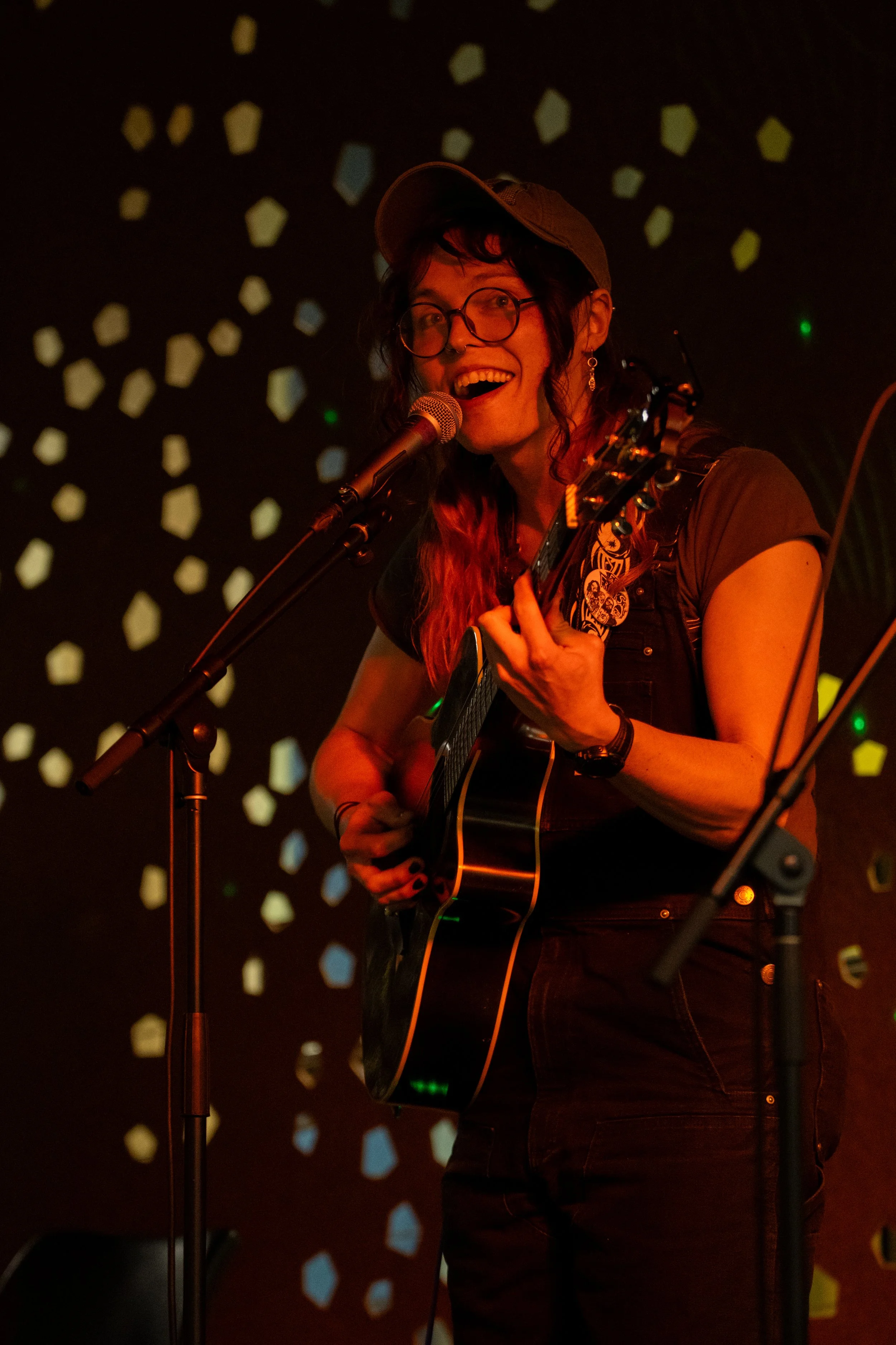 A songwriters' round sponsored by the Earlham Collage Music Department, hosted November of 2025 featuring Anna p.s. , Elijah Baston, and Cyrus Garretson.