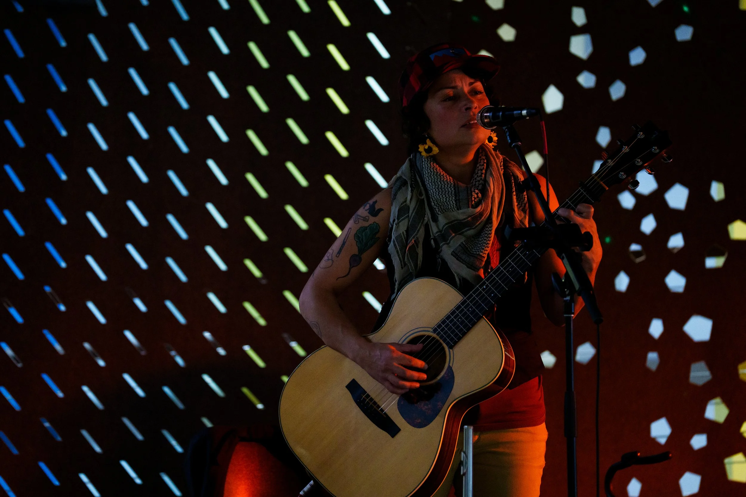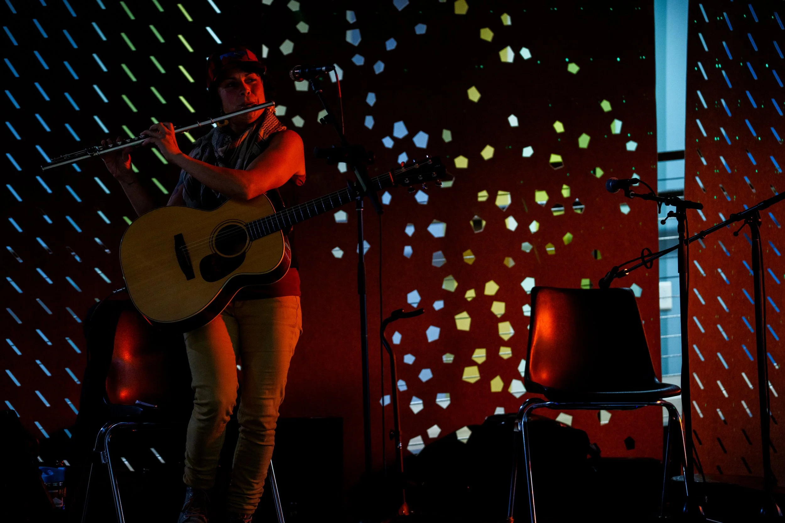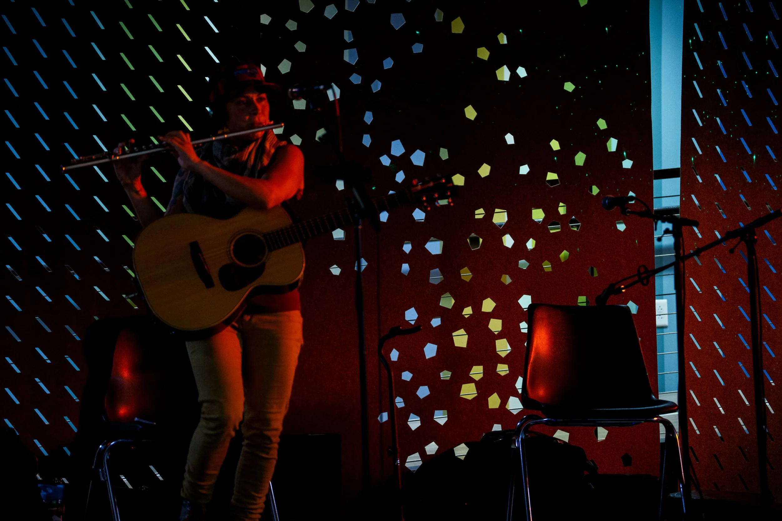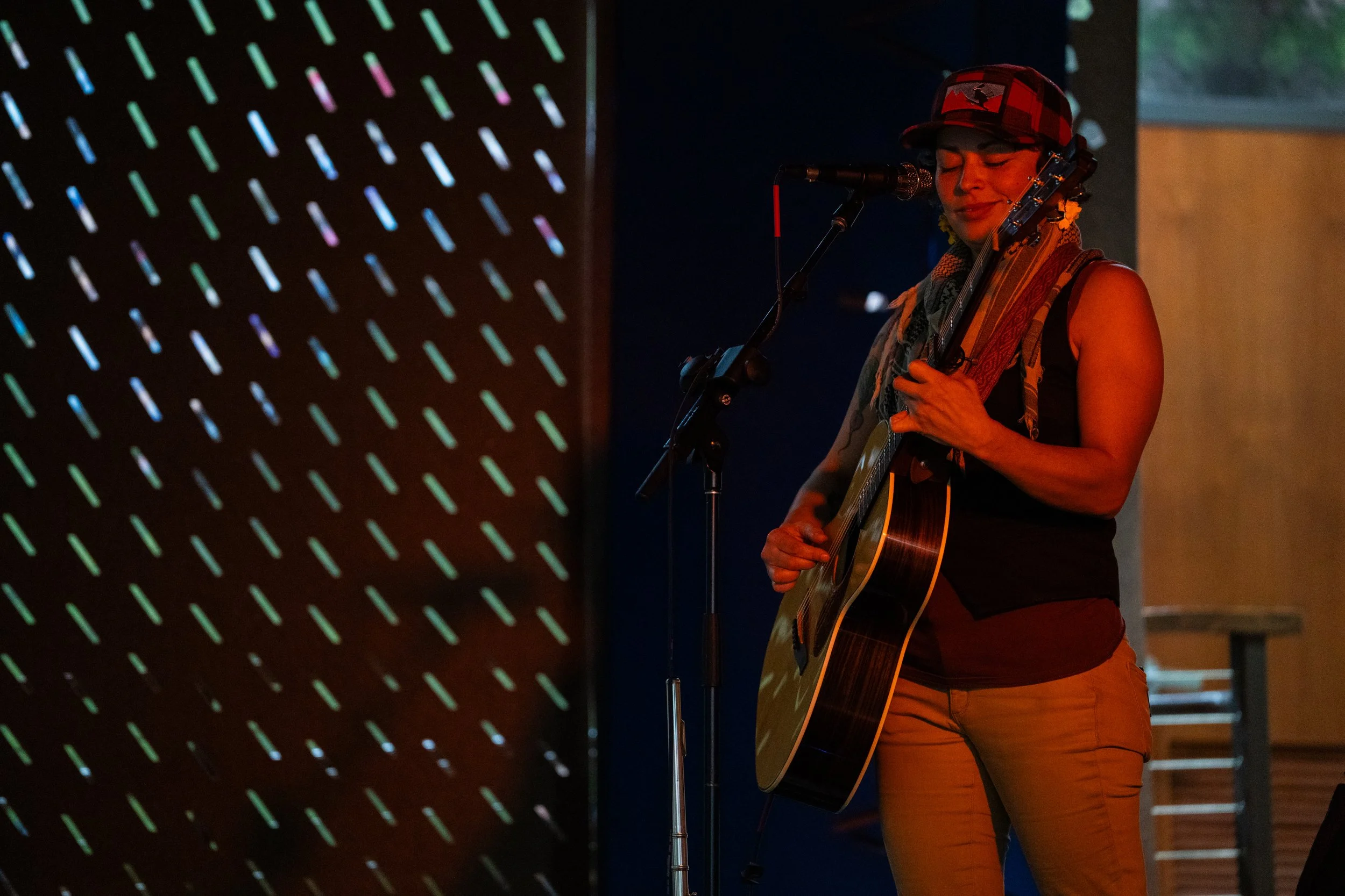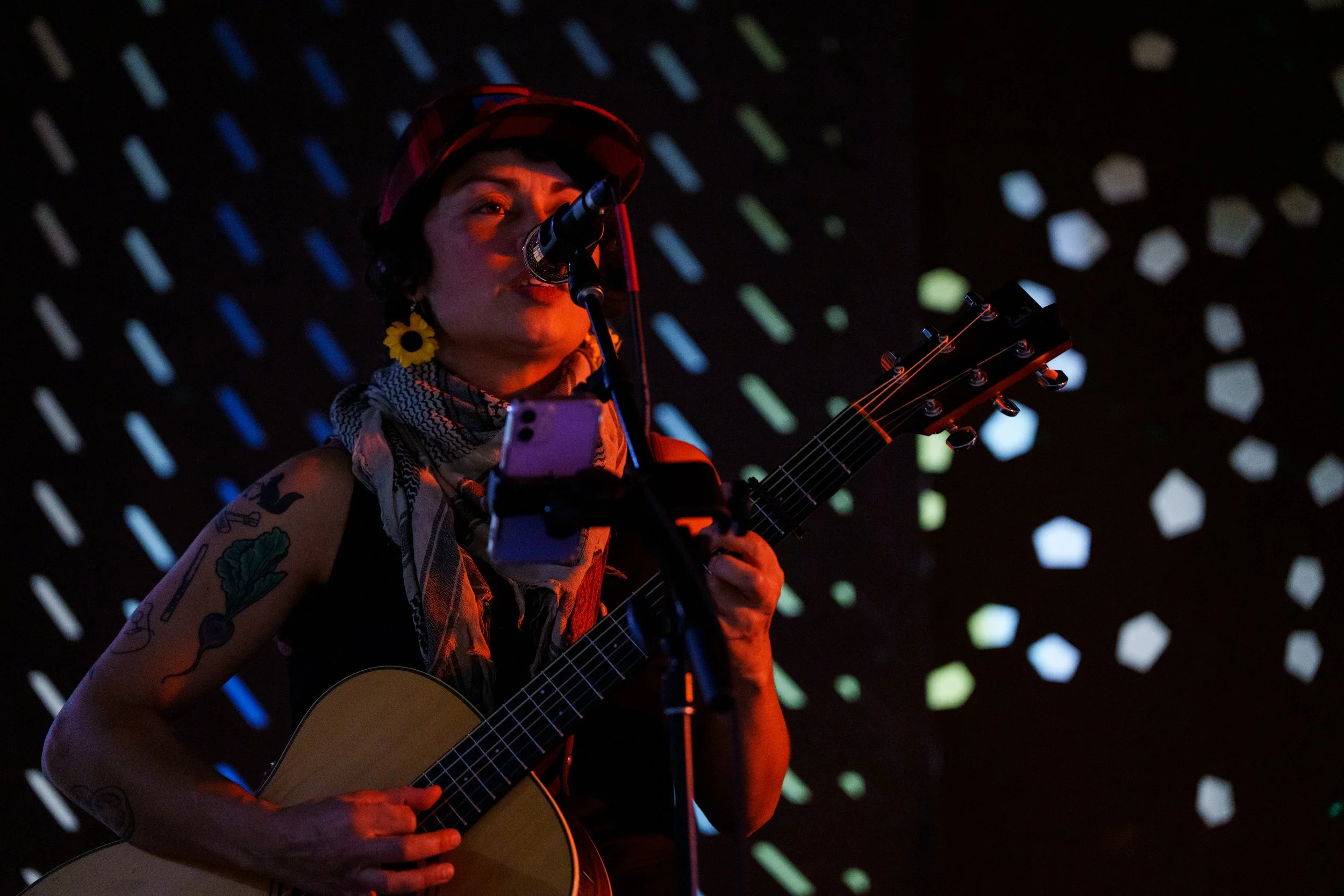 A songwriters' round sponsored by the Earlham Collage Music Department, hosted November of 2025 featuring Anna p.s. , Elijah Baston, and Cyrus Garretson.