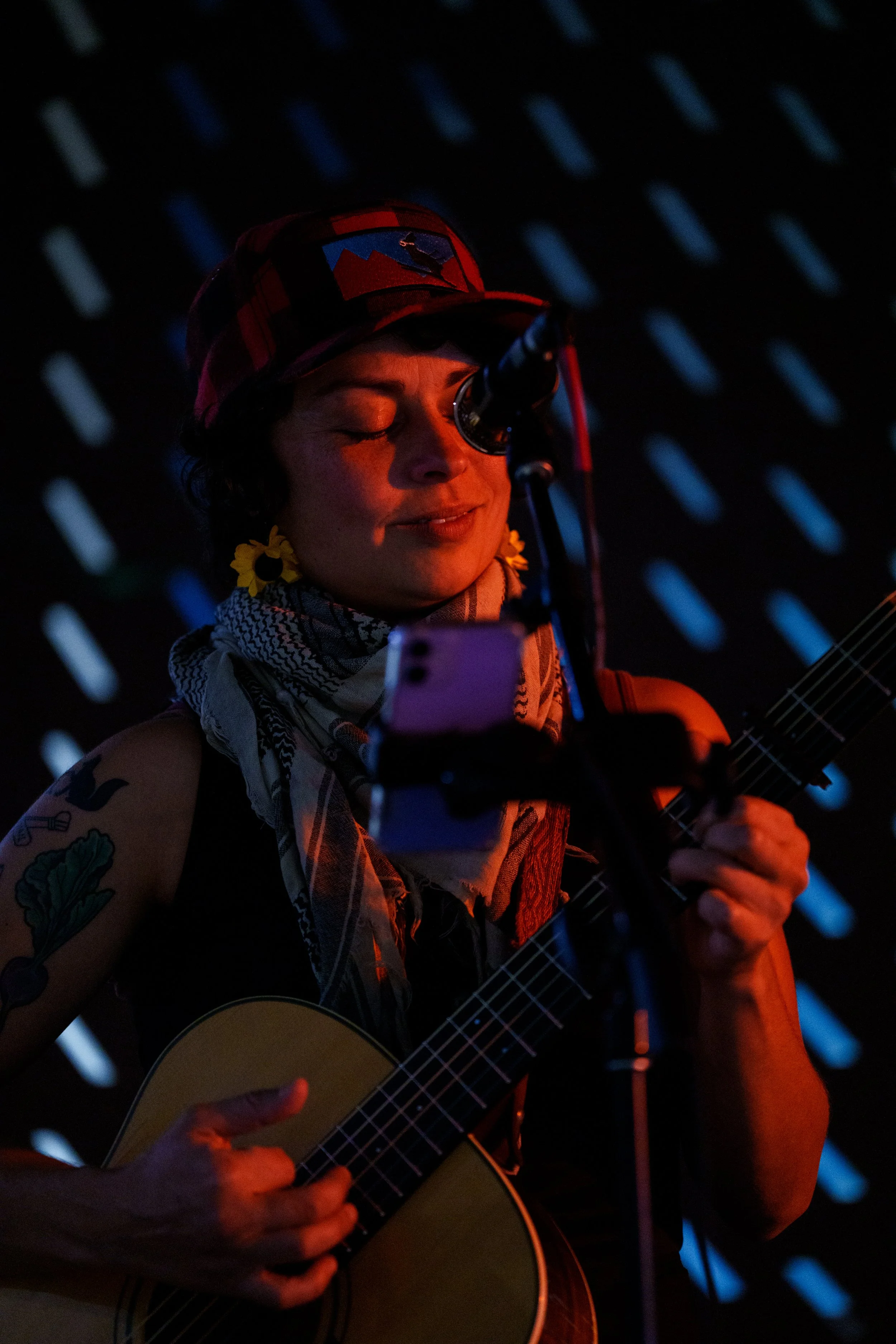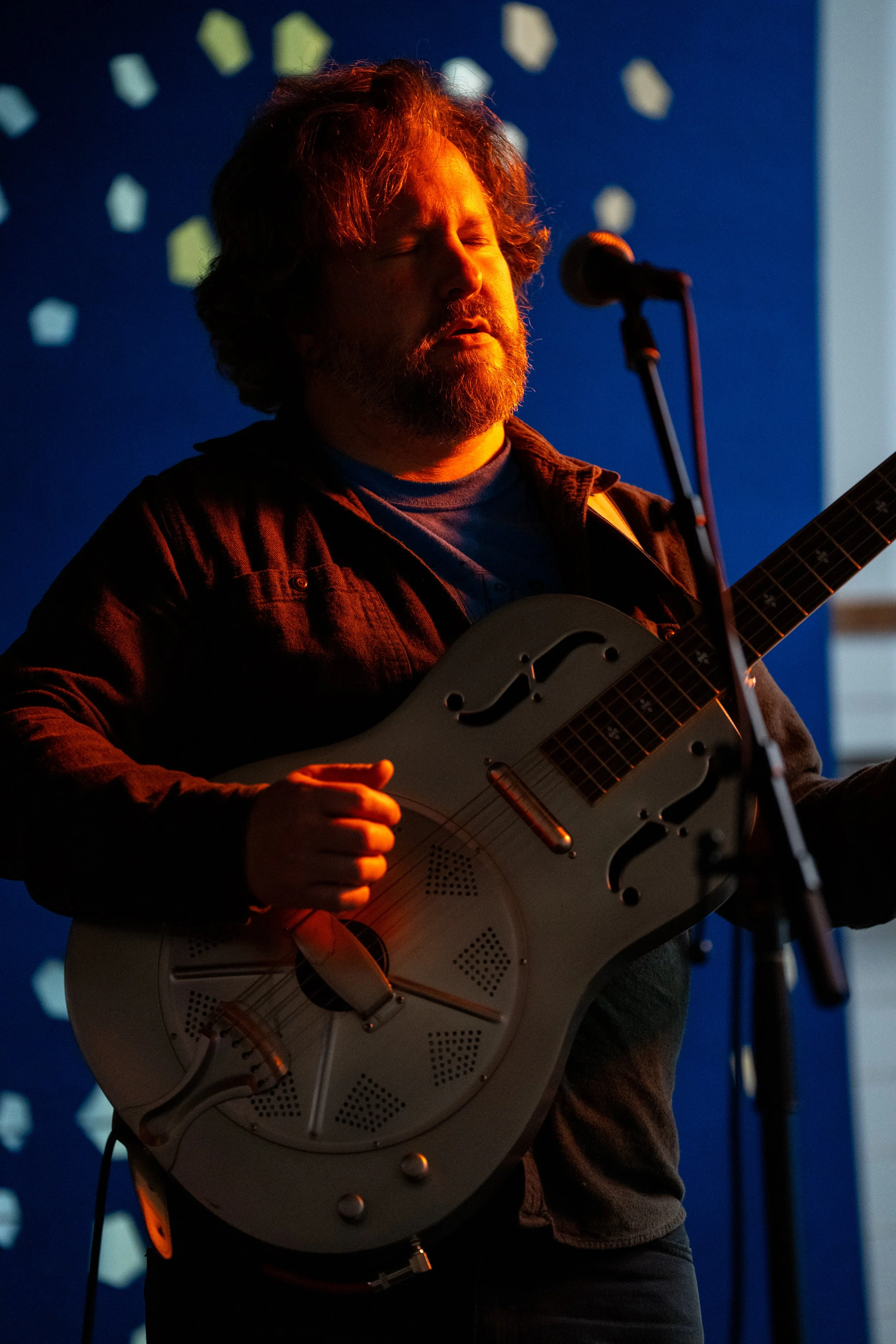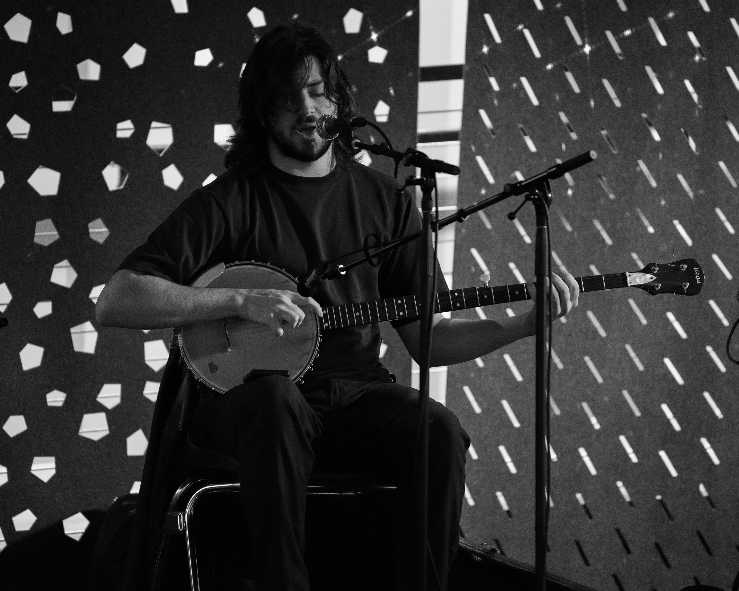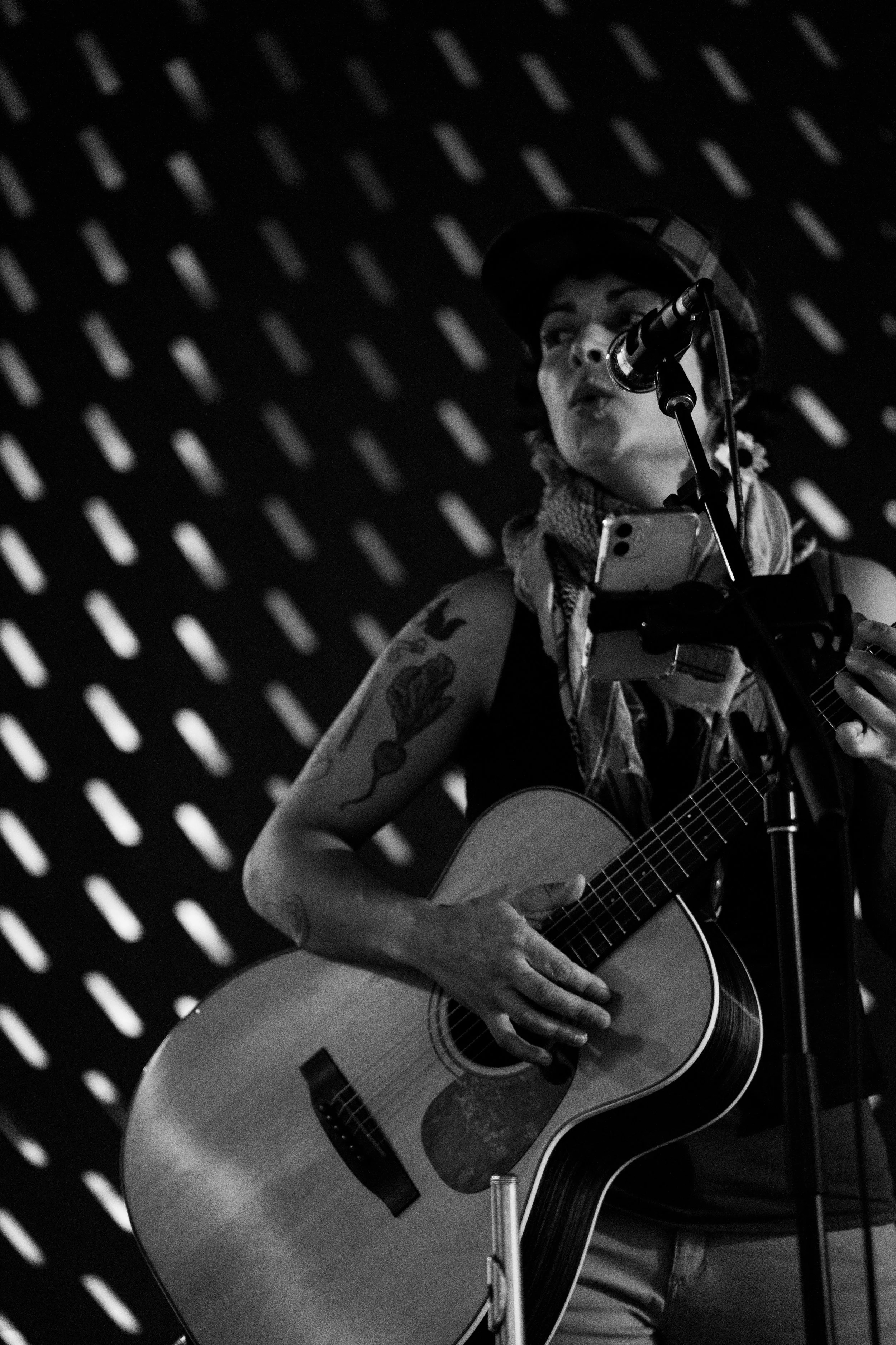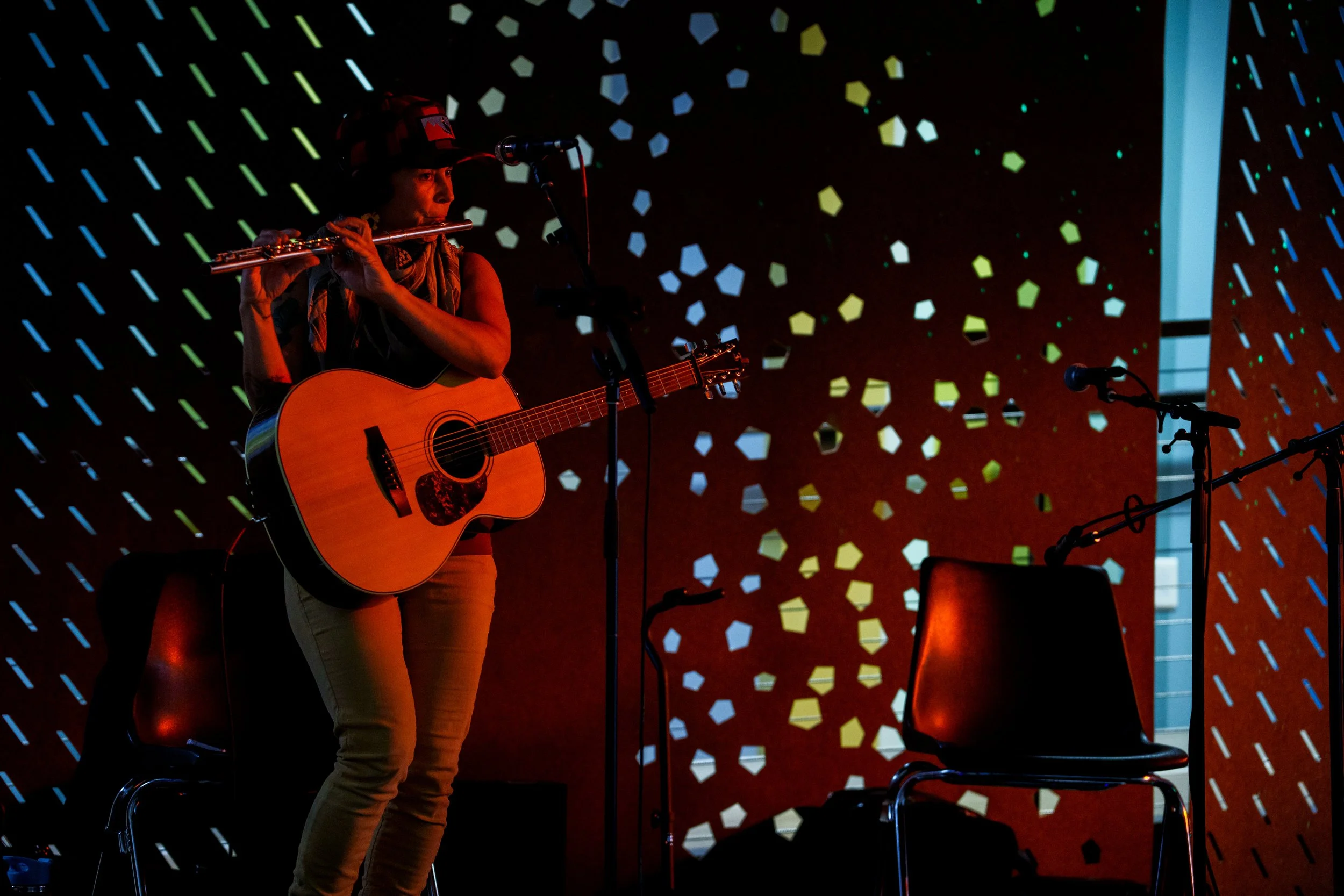A songwriters' round sponsored by the Earlham Collage Music Department, hosted November of 2025 featuring Anna p.s. , Elijah Baston, and Cyrus Garretson.